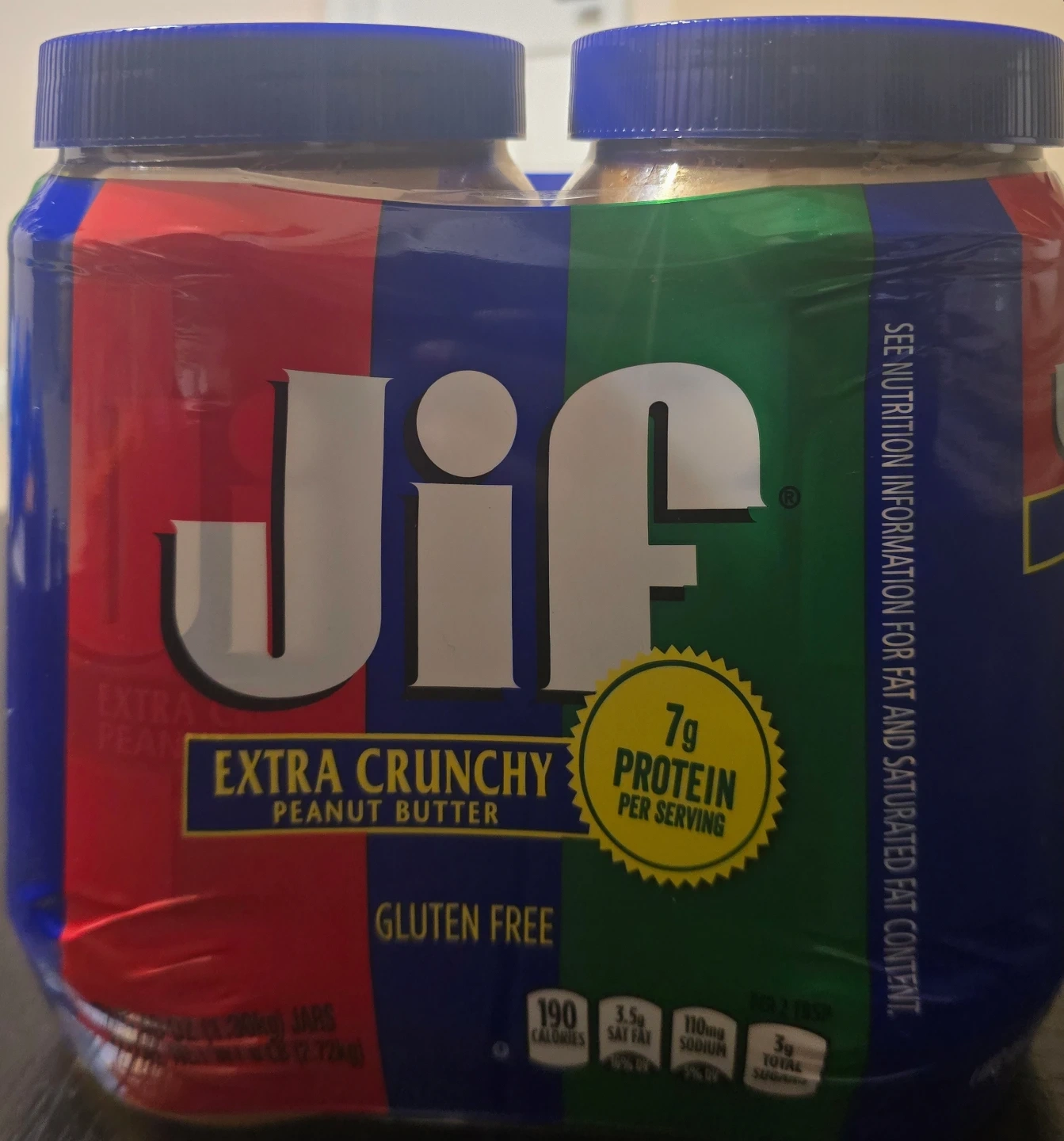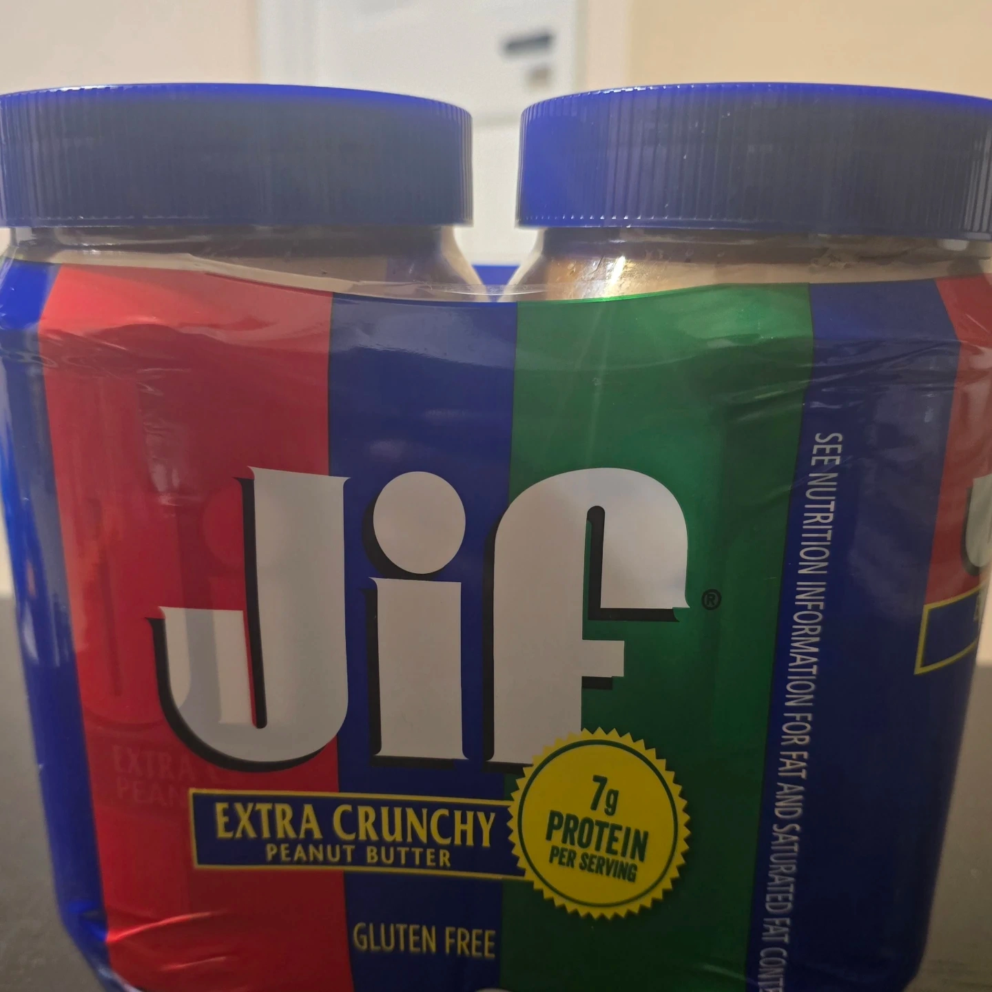 Selling a twin pack of Jif Extra Crunchy Peanut Butter! It's gluten-free and has 7g of protein per serving