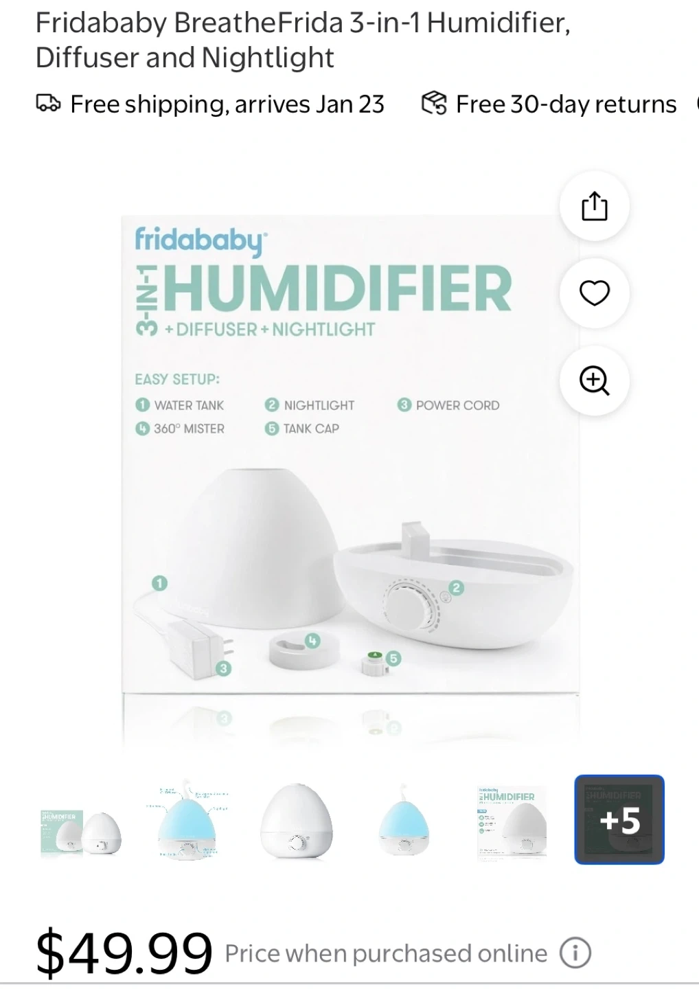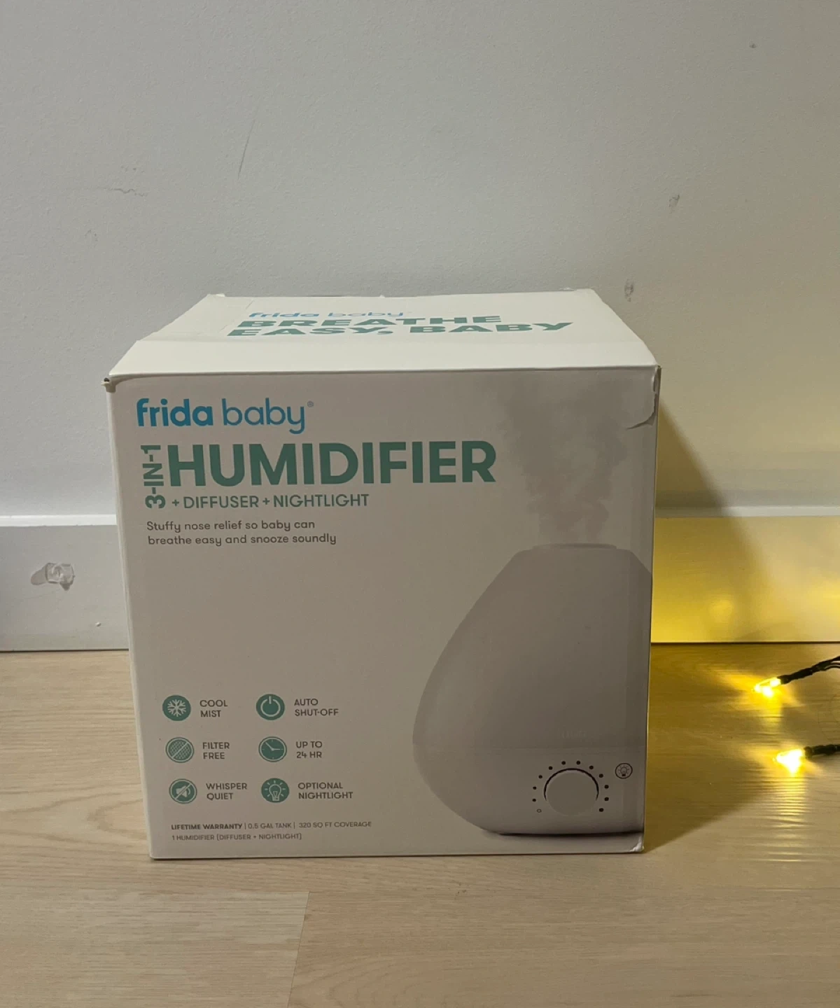 Selling a brand new Fridababy 3-in-1 Humidifier, Diffuser, and Nightlight! It's designed to help with stuffy nose relief so baby can breathe easy and snooze soundly. The box includes the humidifier and power cord.