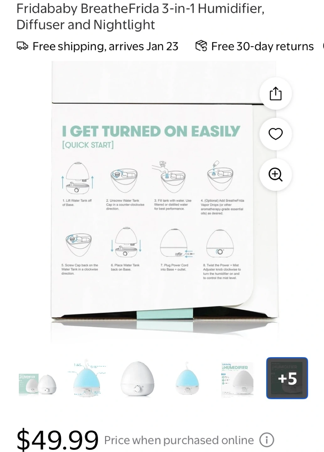 New - Fridababy 3-in-1 Humidifier, Diffuser & Nightlight