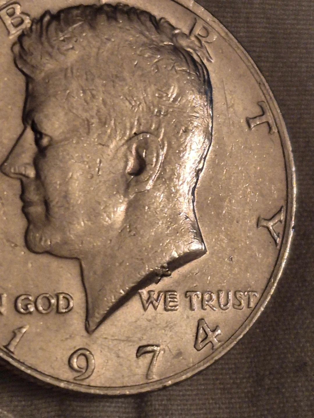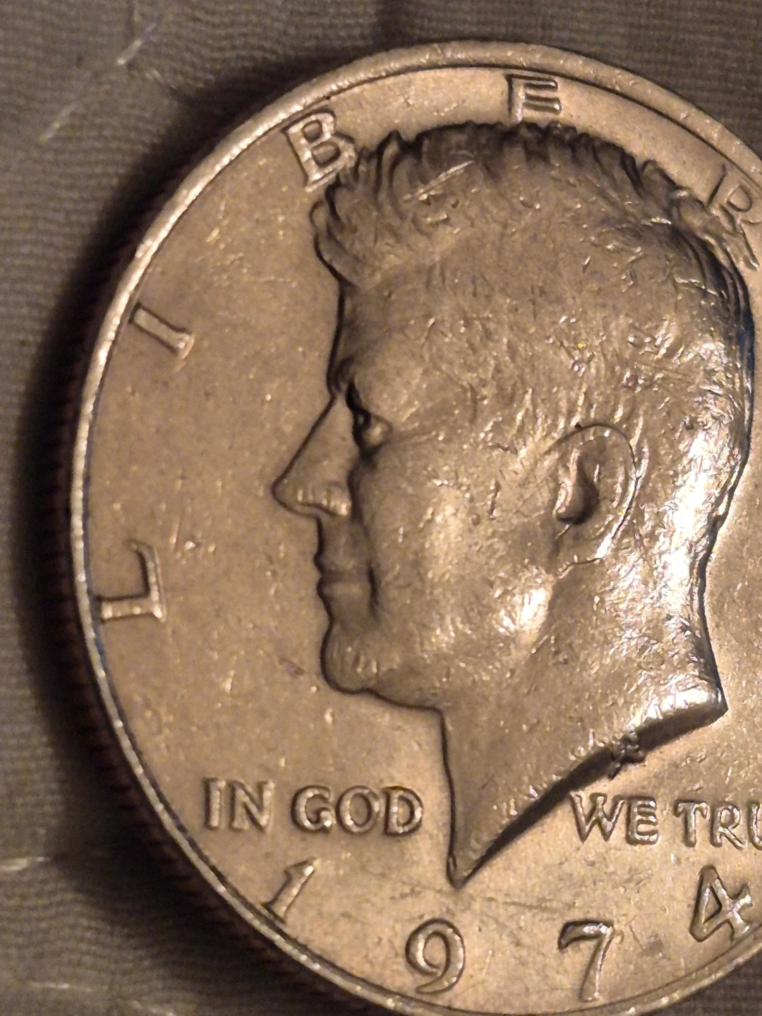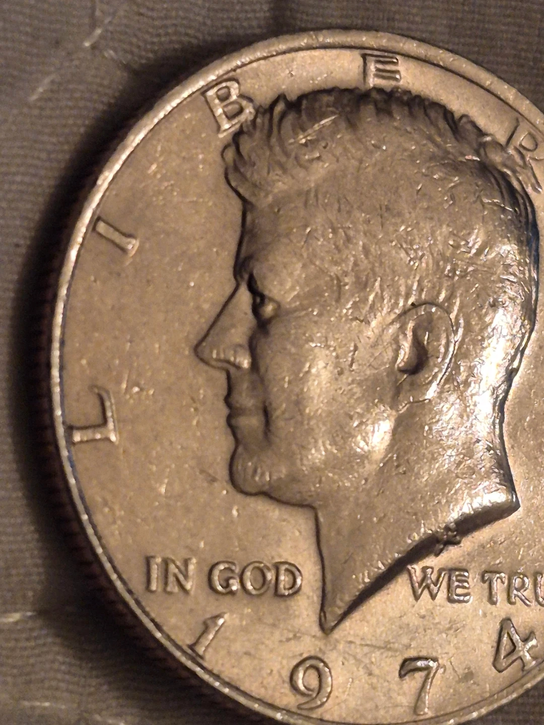 Selling a 1974 Kennedy Half Dollar coin. With no mint mark most likely Philadelphia It has the words "In God We Trust" on it. It's in used but far from poor condition, please see photos! It's got a great double die in almost every letter. Half Dollar on reverse has been pressed with an imperfect die it grabbed on front coin as well same area as back United States Of America dd Obv. Rev. Item is very nice. Great Price!!. DEFINITELY COLLECTABLE GET it while i still got it.