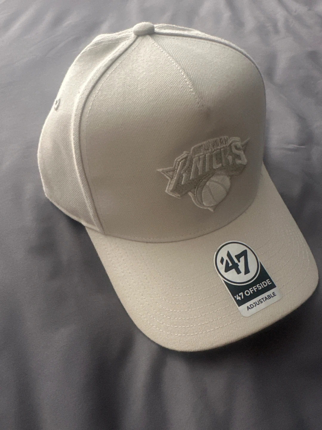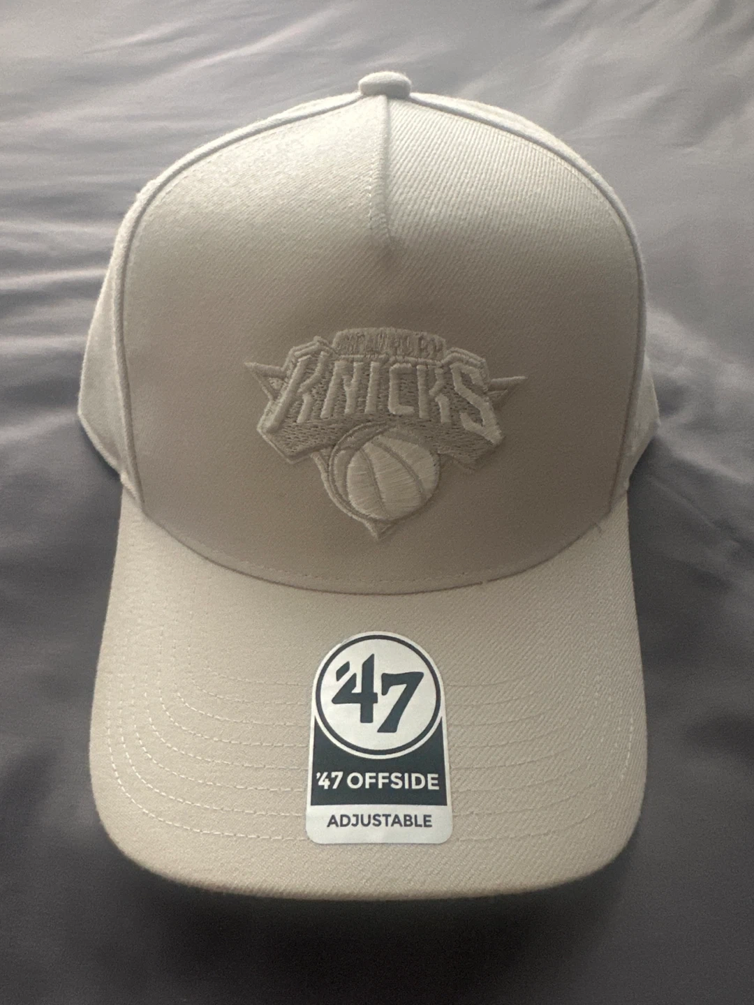 Selling a '47 Brand Knicks Ballpark Offside Cream hat in OSFA (One Size Fits All)! The hat is in new condition and features the Knicks logo. Originally bought for $40