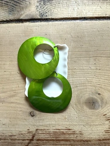 These Vintage Round Green Glass Pierced Dangle Drop Earrings are a fun and unique accessory for women. Made of green glass, these earrings feature a round shape and a dangle/drop style. The hook closure ensures a secure fit on the lobe. With their vintage charm and original design, these earrings are a fashionable and timeless addition to any jewelry collection.