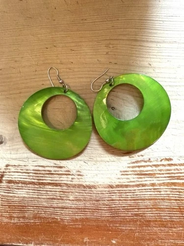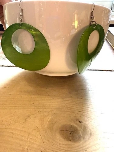 Vintage Round Green Glass Pierced Dangle Drop Earrings