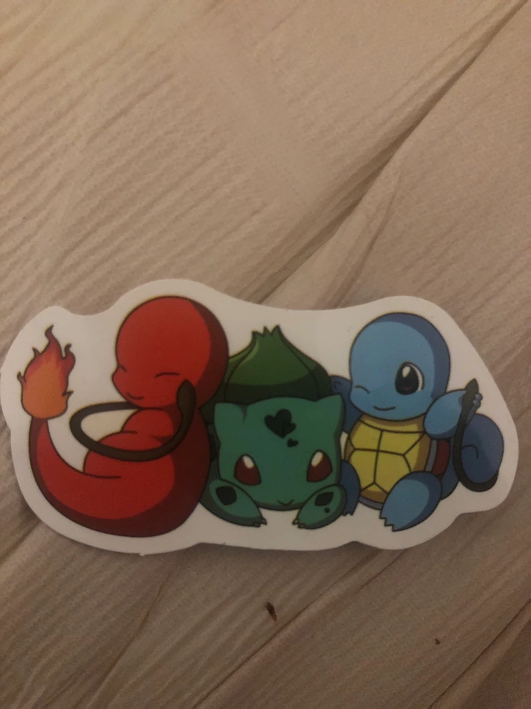 This sticker features the original three Pokémon starters: Charmander, Bulbasaur, and Squirtle. It's perfect for decorating laptops, water bottles, or notebooks. The vinyl material makes it durable for everyday use!