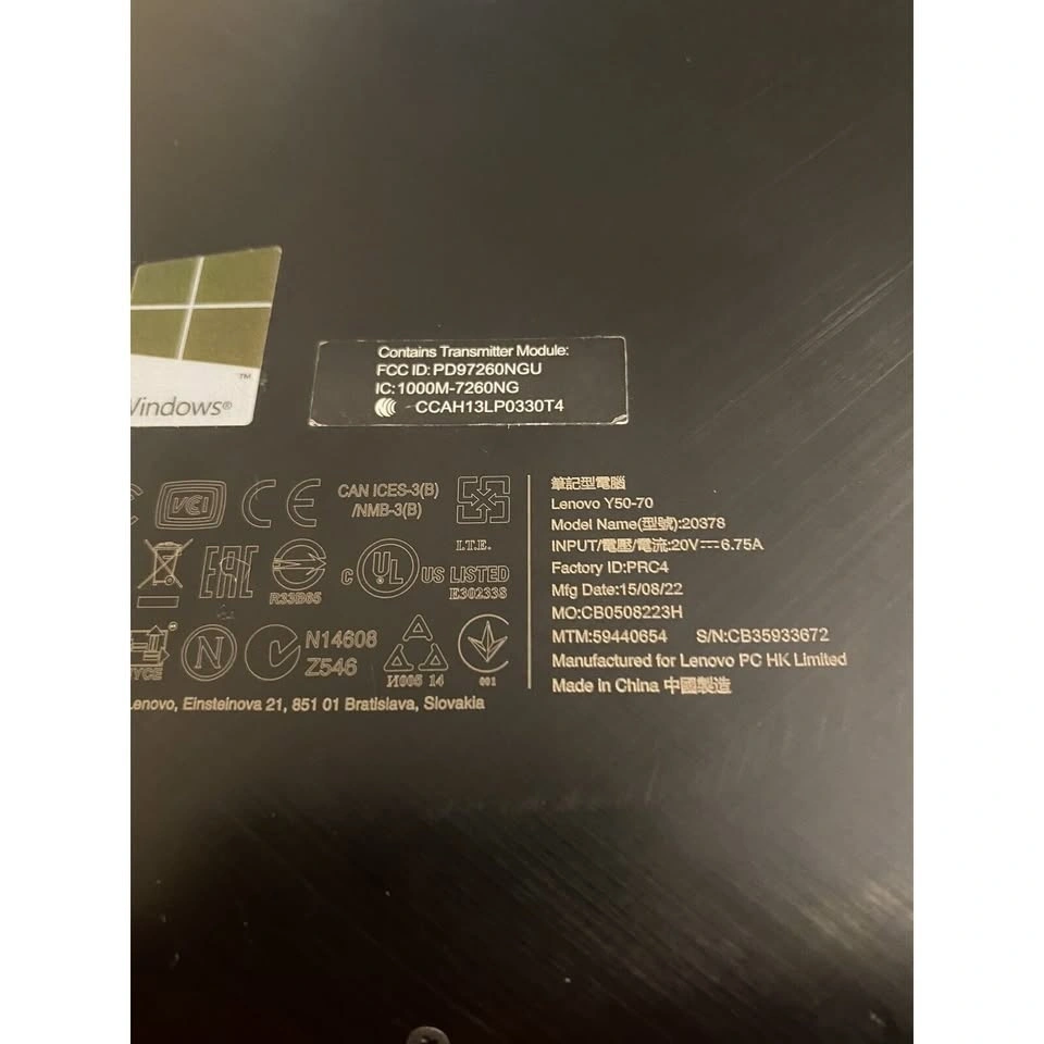 Model: Lenovo Y50-70