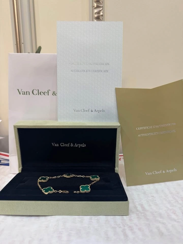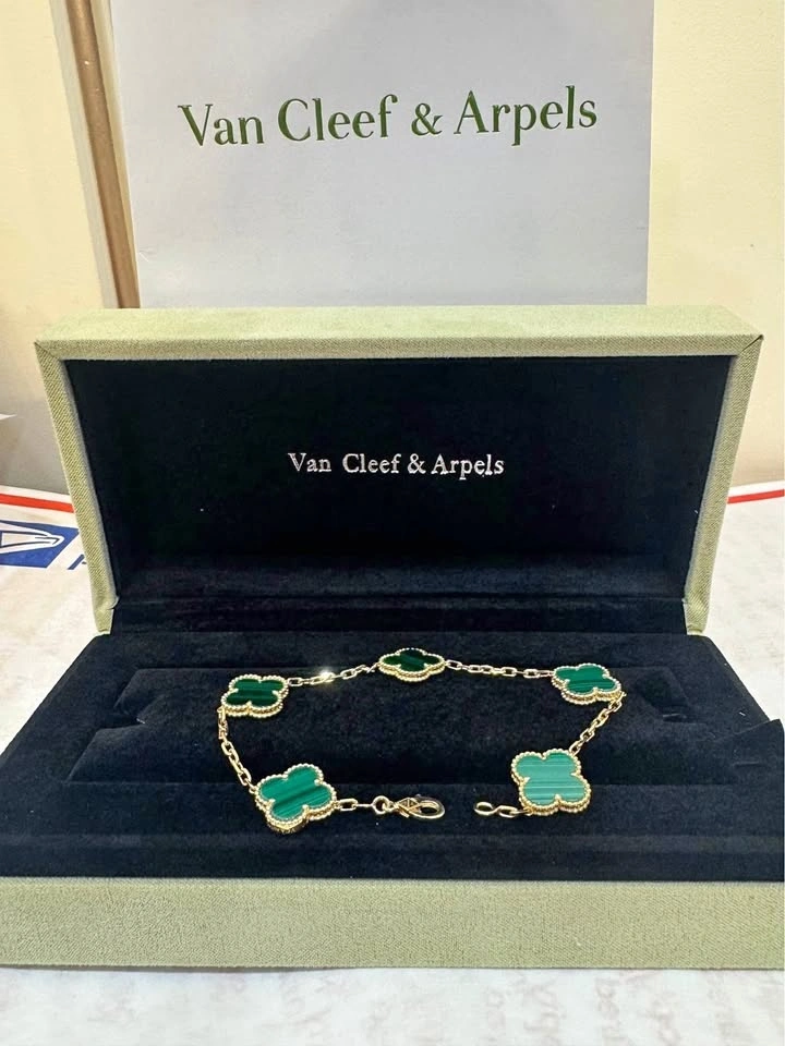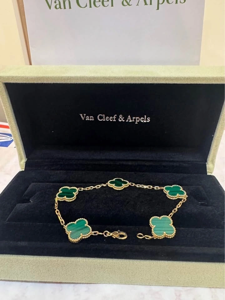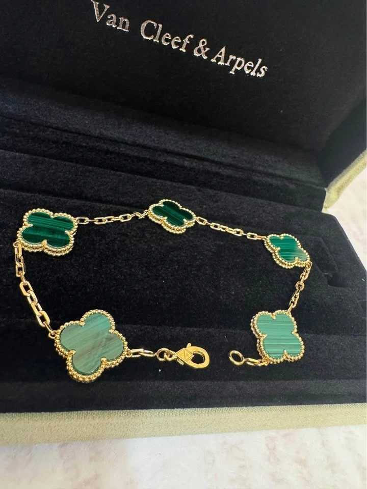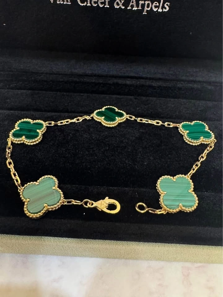 Van Cleef VCA Green Malachite 5 Clover Bracelet 18k yellow gold