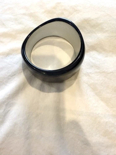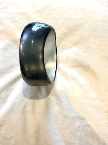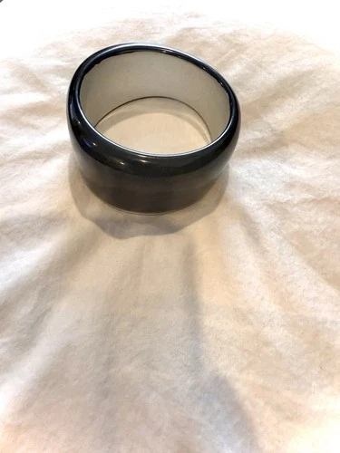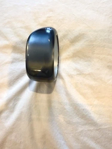 This Vintage Clear Gray Asymmetrical Lucite Cuff Bracelet from the 1960s exudes a retro charm that is perfect for fashion-forward women. The asymmetrical shape and original design make it a unique and stylish accessory, while the lucite material gives it a mod cast that adds a touch of vintage flair. The gray color adds a contemporary twist to the classic cuff style, making it a versatile piece that can be worn for various occasions. This bracelet is sure to make a statement with its retro theme and vintage appeal.