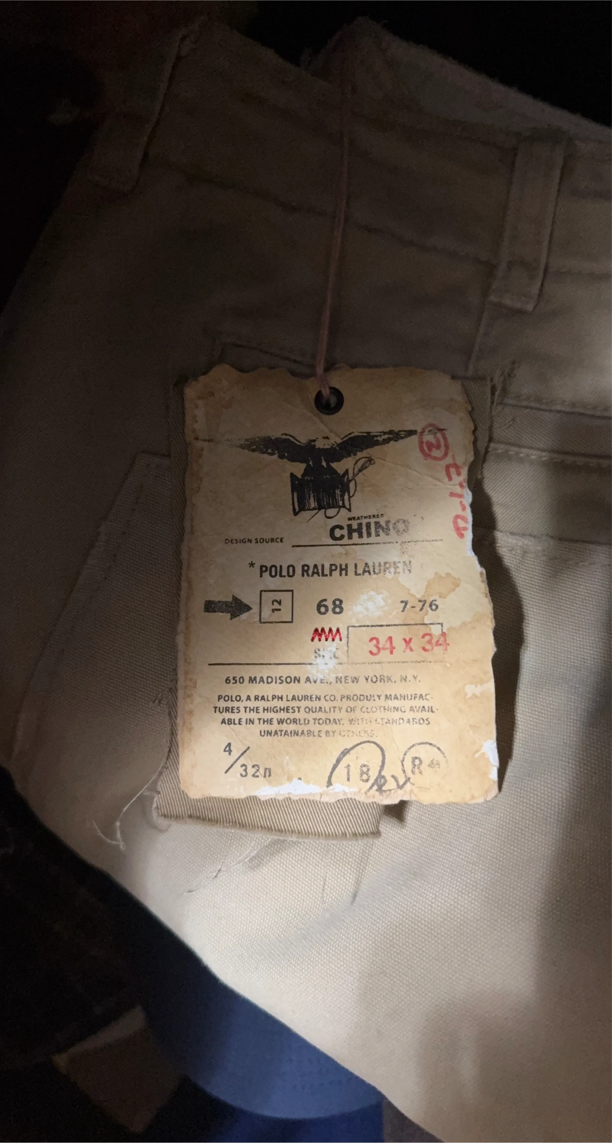 These are Polo Ralph Lauren Chino pants. Tan color. Size 34waist, 34 inseam. Cotton material.
