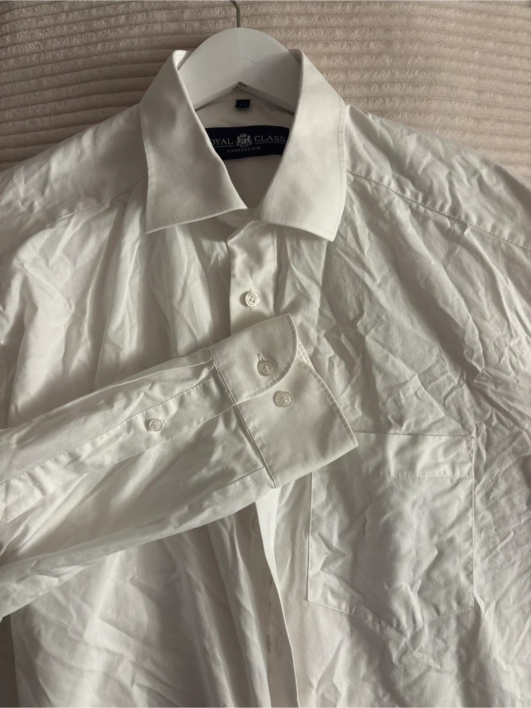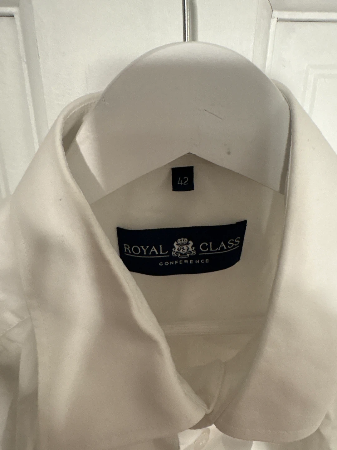 White long-sleeve dress shirt from Royal Class Conference. Size 42. It's a classic button-down style. This shirt is suitable for formal or business occasions.