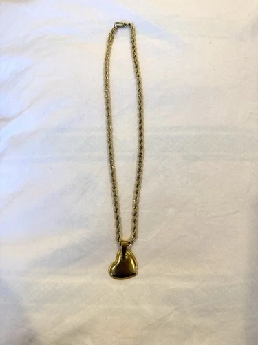 This heart-shaped gold-toned pendant necklace with a gold-toned chain is a charming and elegant piece of jewelry. The pendant is in the shape of a heart, featuring a gold-plated charm with lobster closure. It makes a thoughtful gift for someone special.