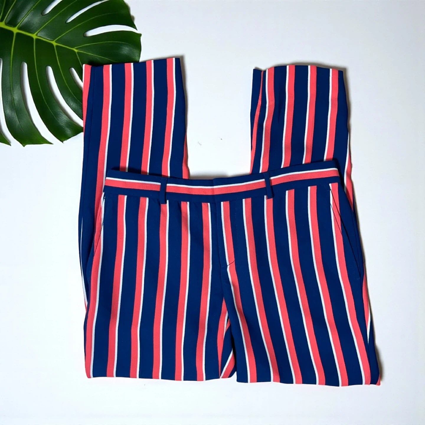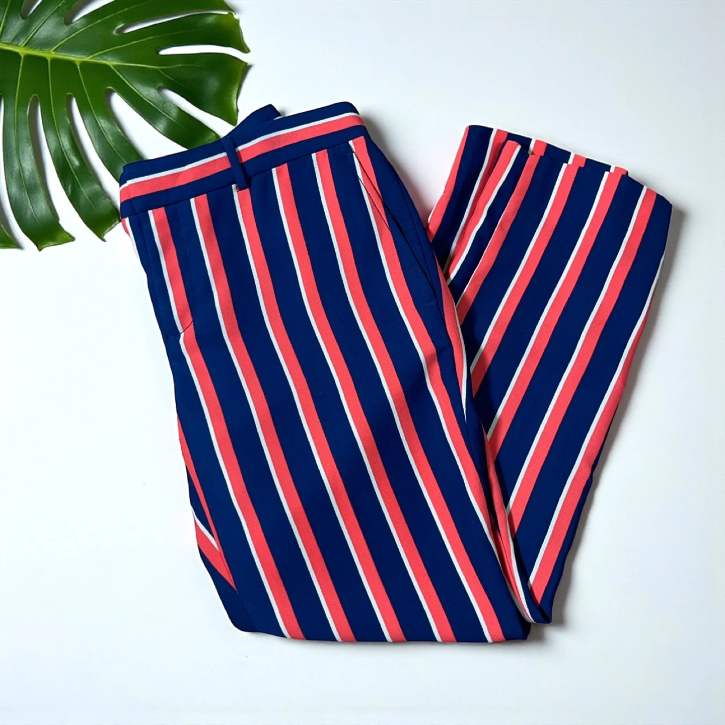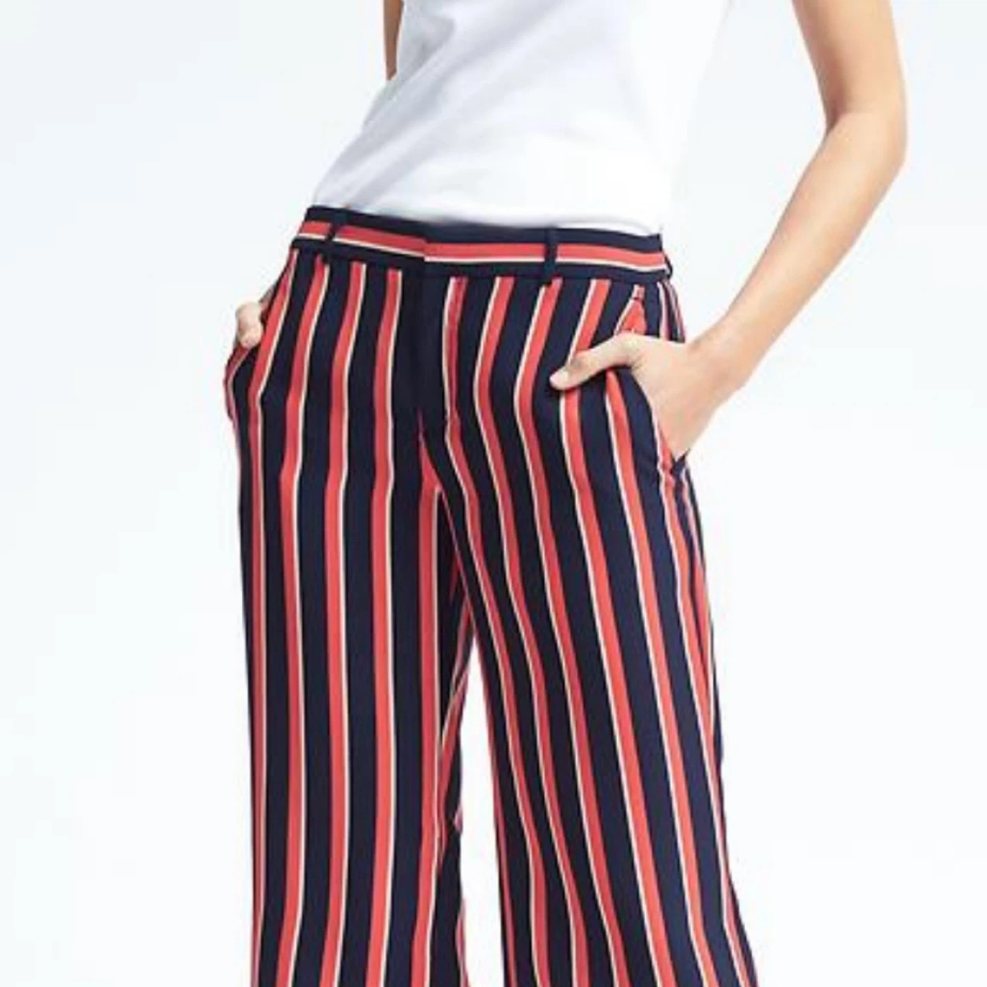 The Ryan Pant from Banana Republic is the ultimate straight trouser β sleek and modern, with a slim fit designed to make your legs look long and lean. This version, in a fabulous navy, red and white vertical striped print, makes a style statement in addition to the leg-lengthening slim-straight silhouette.