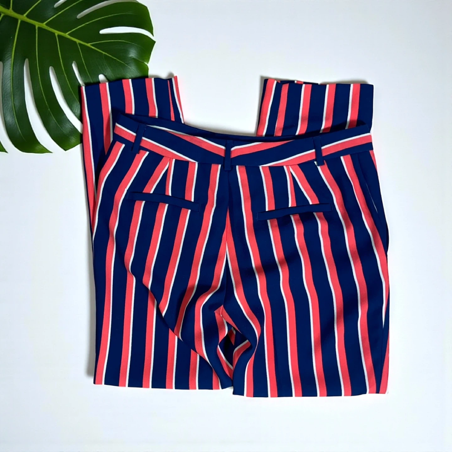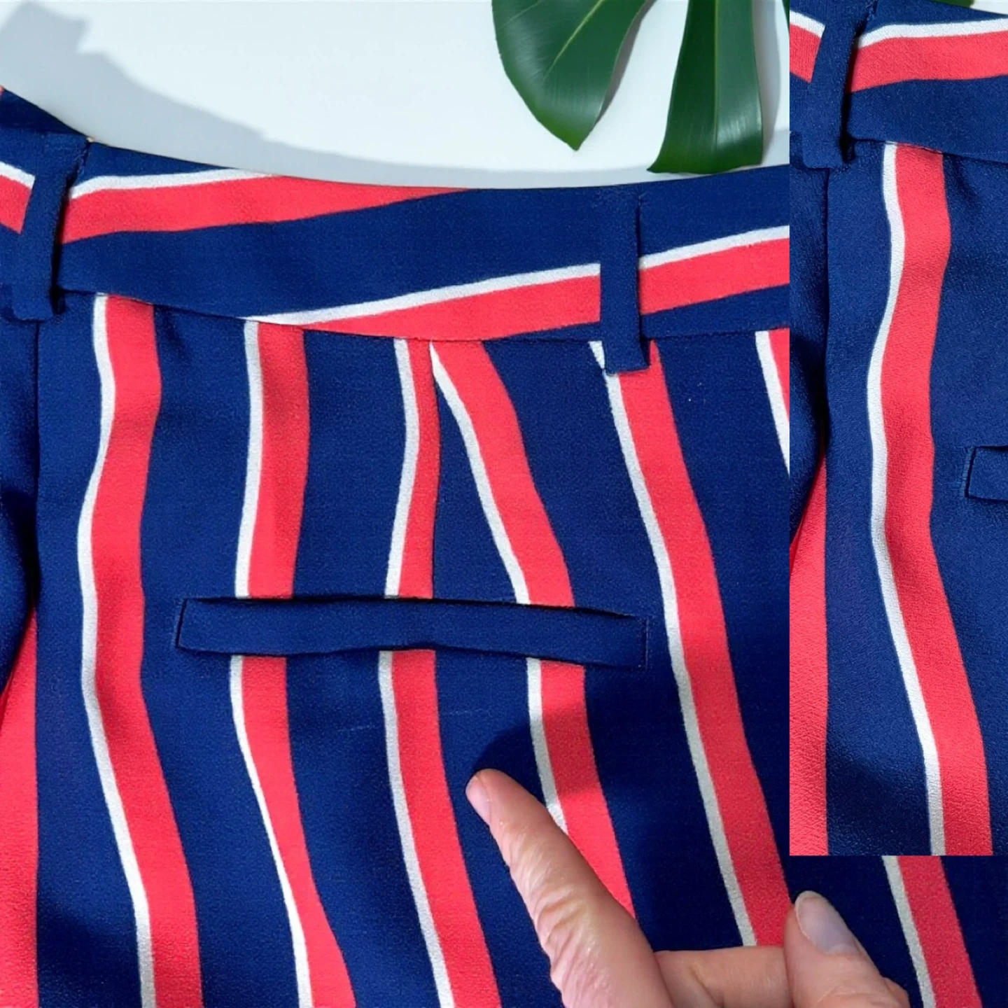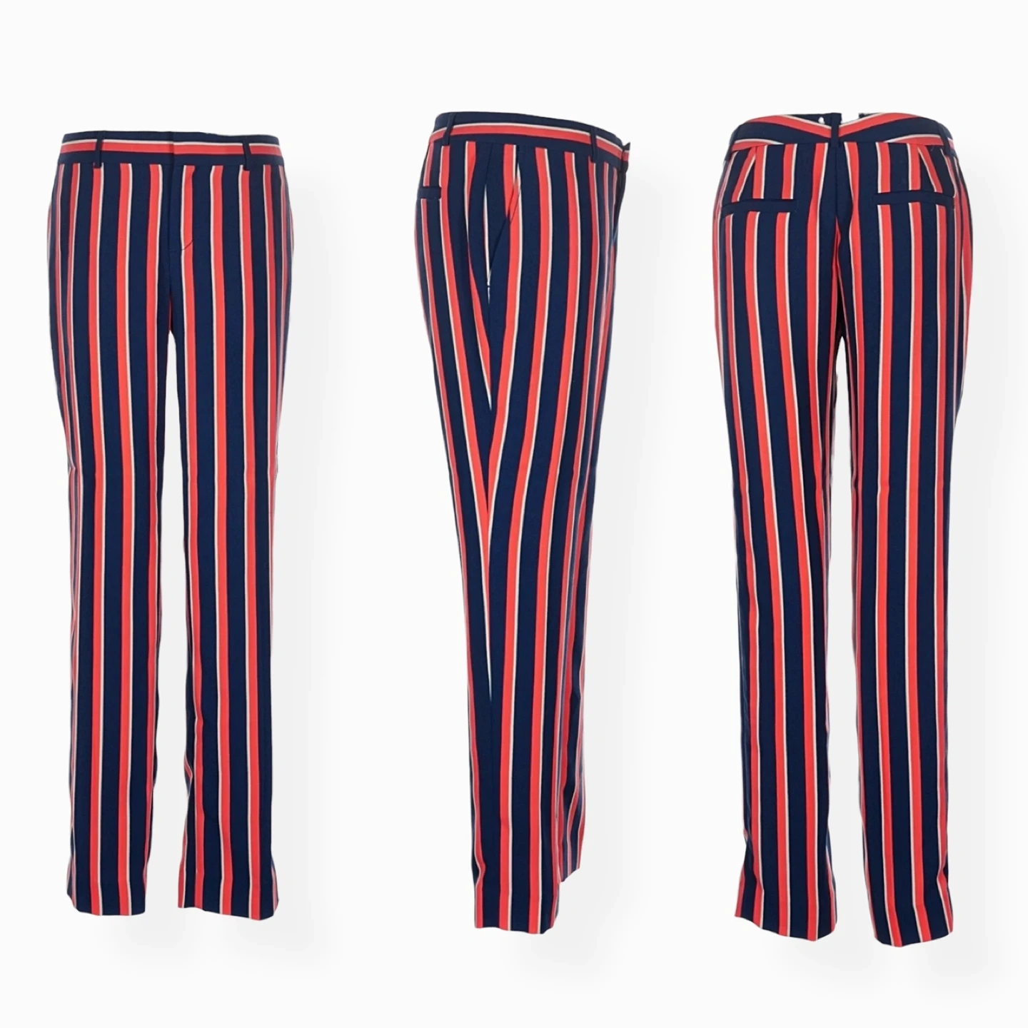 The Ryan Pant from Banana Republic is the ultimate straight trouser β sleek and modern, with a slim fit designed to make your legs look long and lean. This version, in a fabulous navy, red and white vertical striped print, makes a style statement in addition to the leg-lengthening slim-straight silhouette.