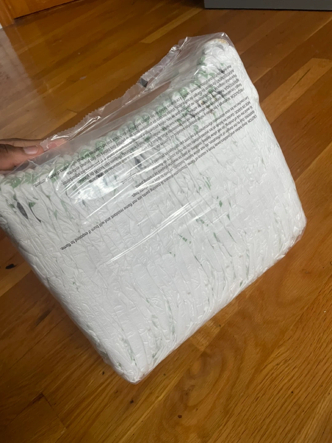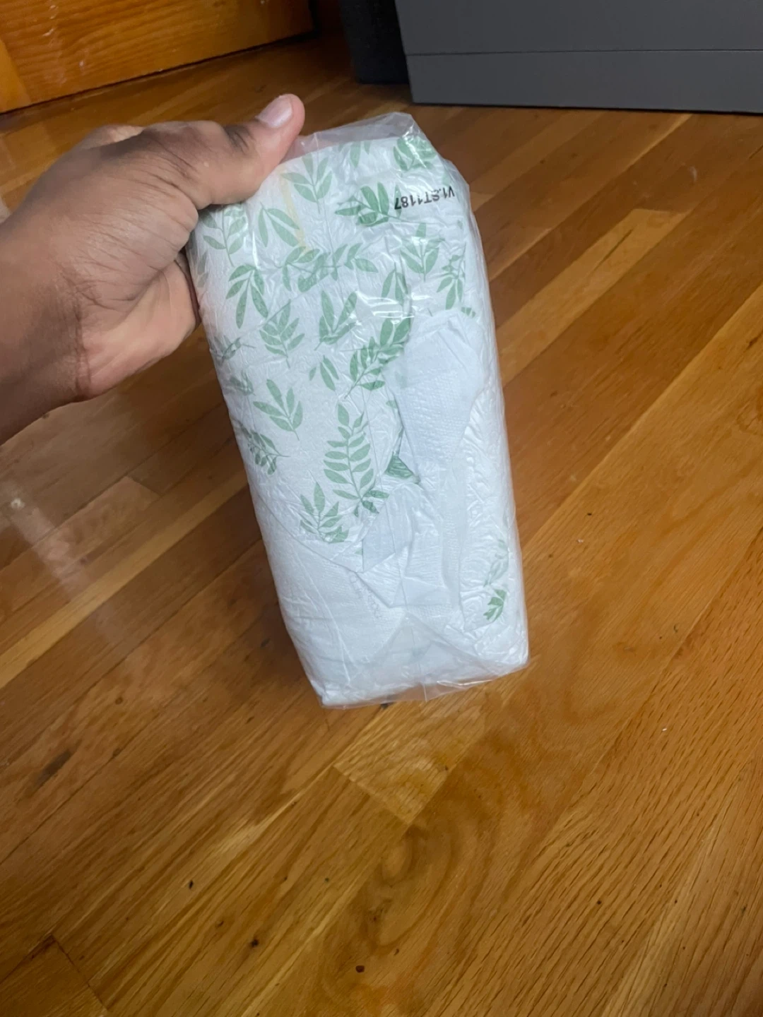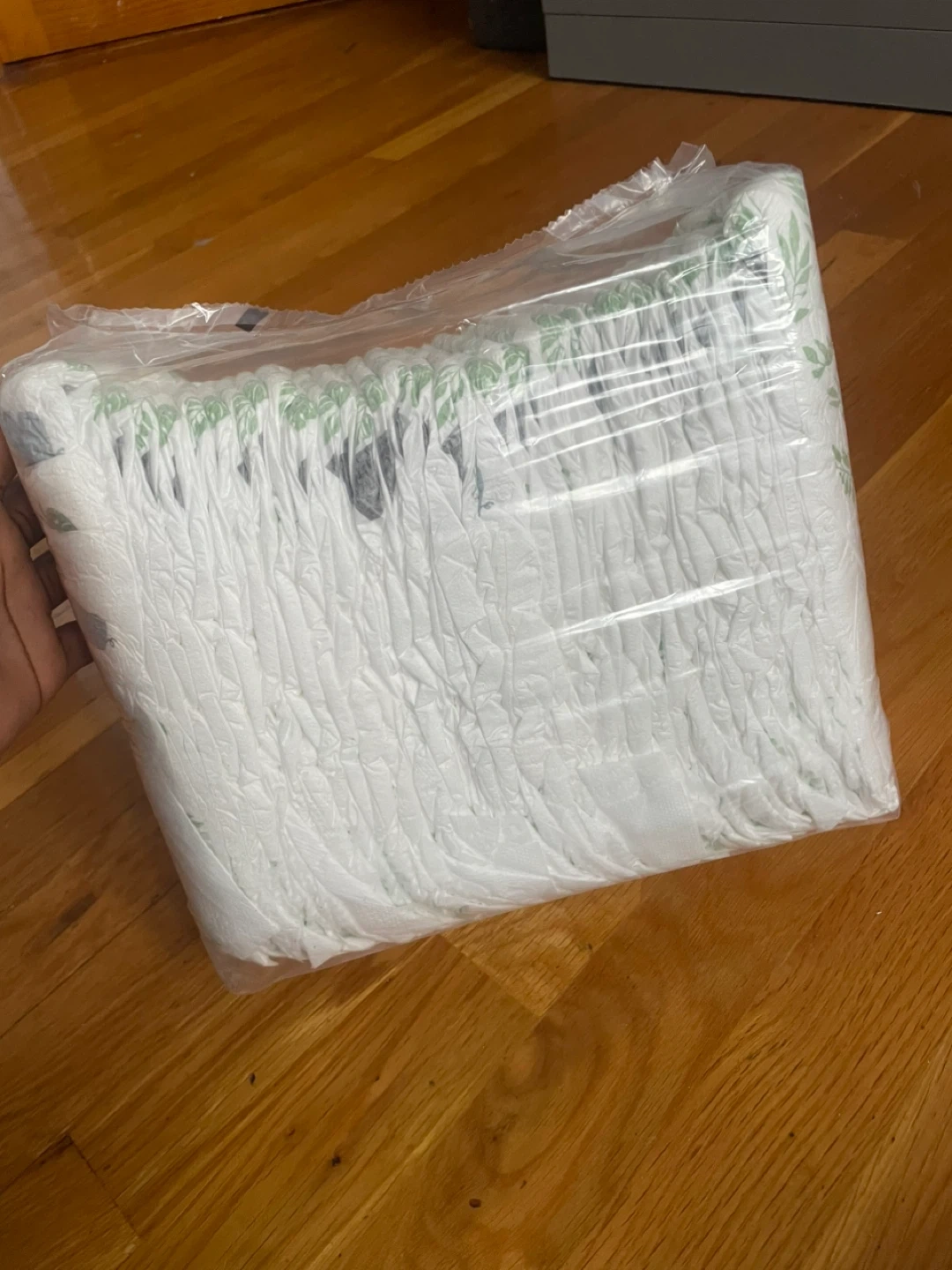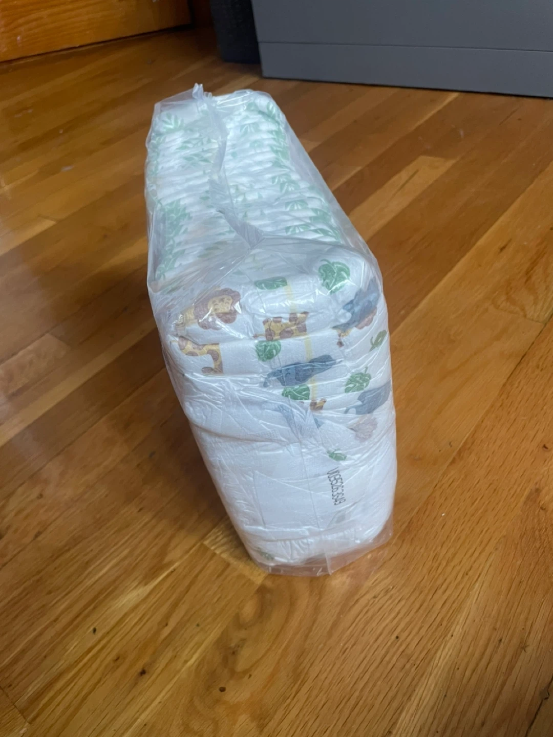 This is a new pack of size 5 diapers. They feature a cute leaf and animal print. Plenty of diapers for your little one!