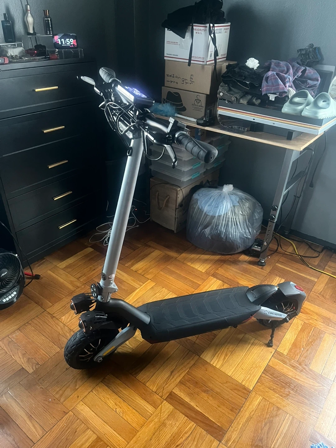 This is a Circooter electric scooter. It features an LED display and lights. This scooter is designed for personal transportation.