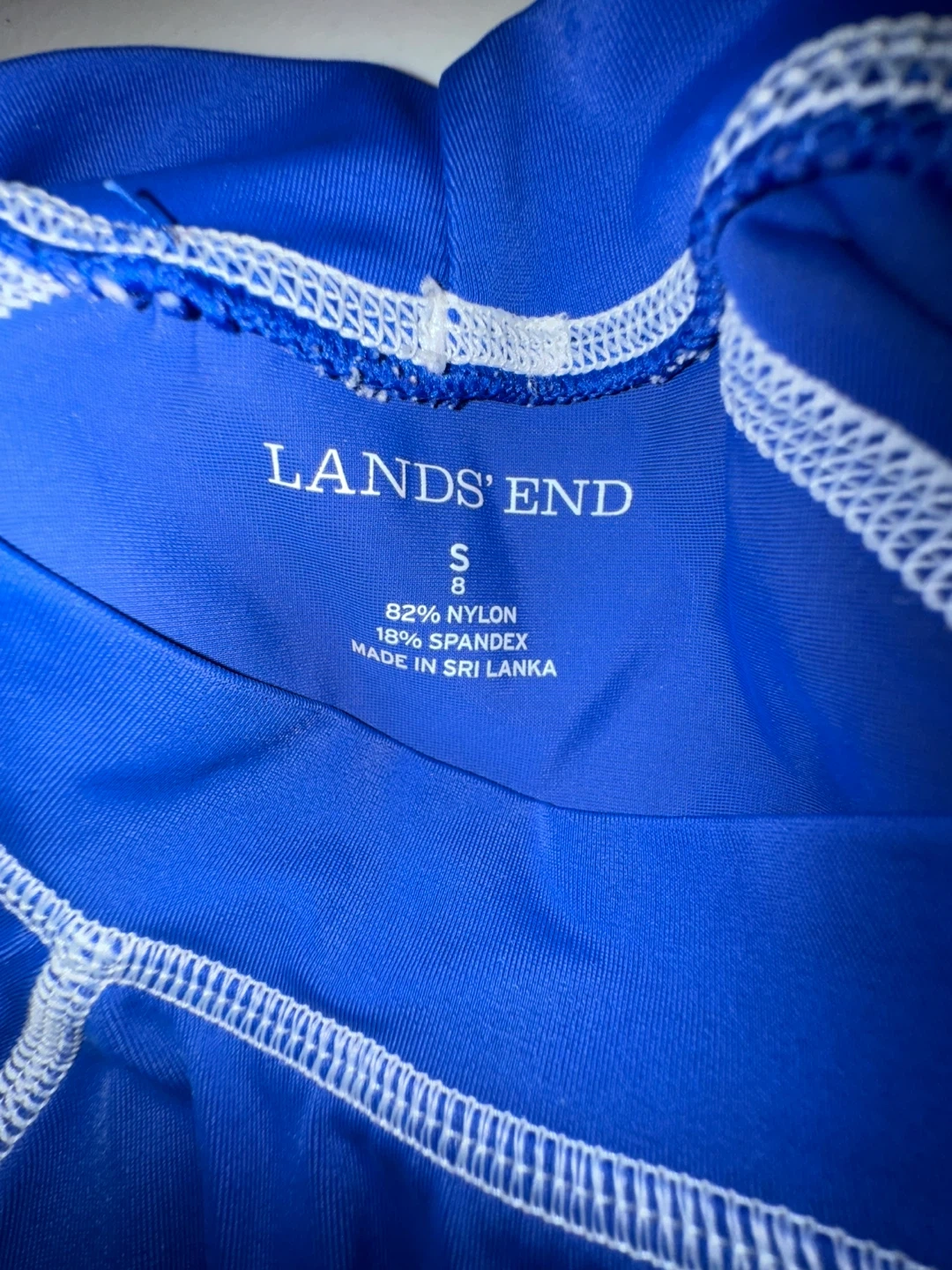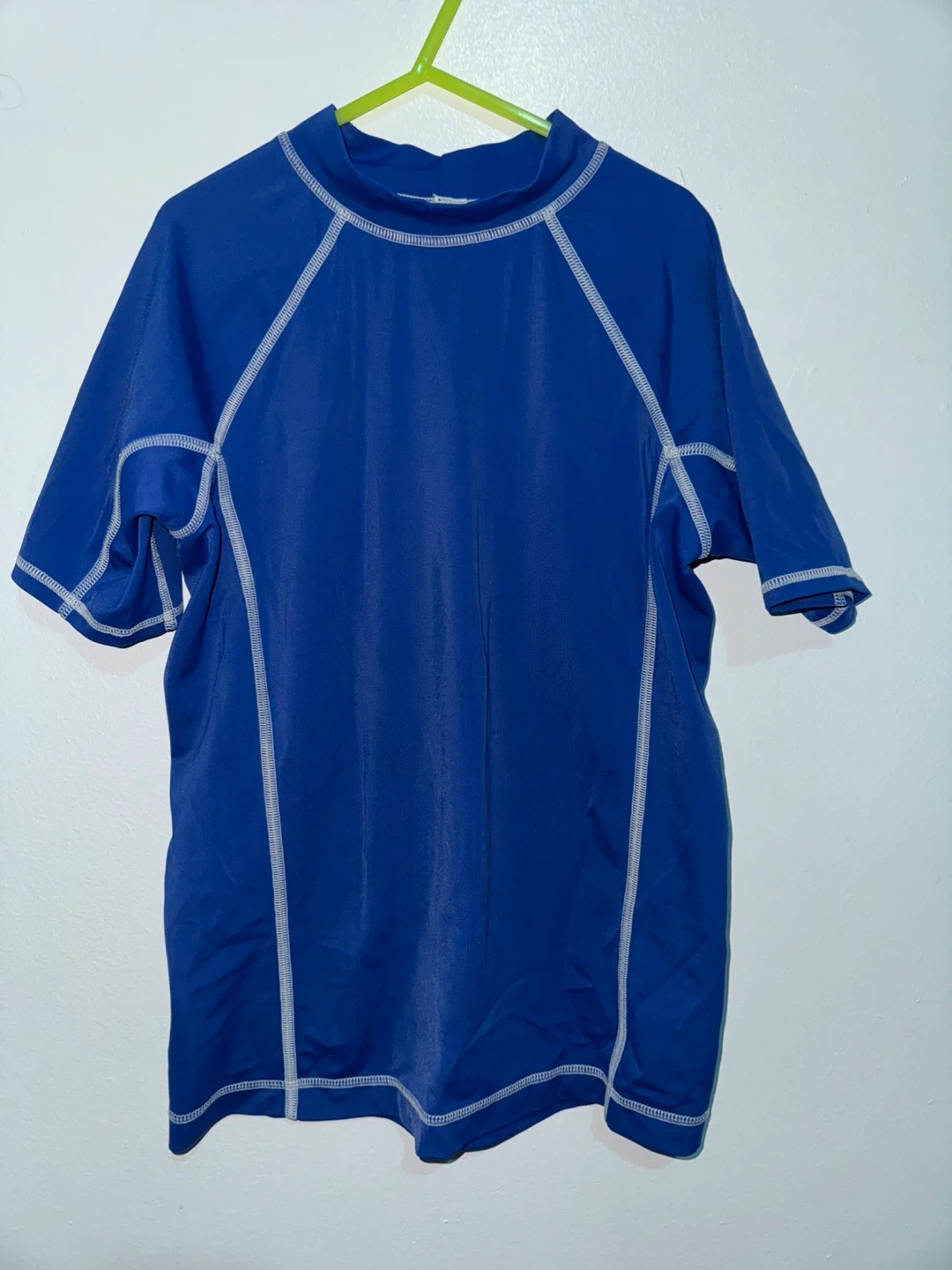 Lands' End blue short-sleeve rash guard swim shirt. Size is small. Made of 82% nylon and 18% spandex. Perfect for sun protection at the beach or pool!
