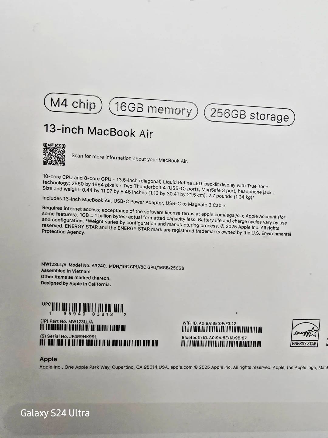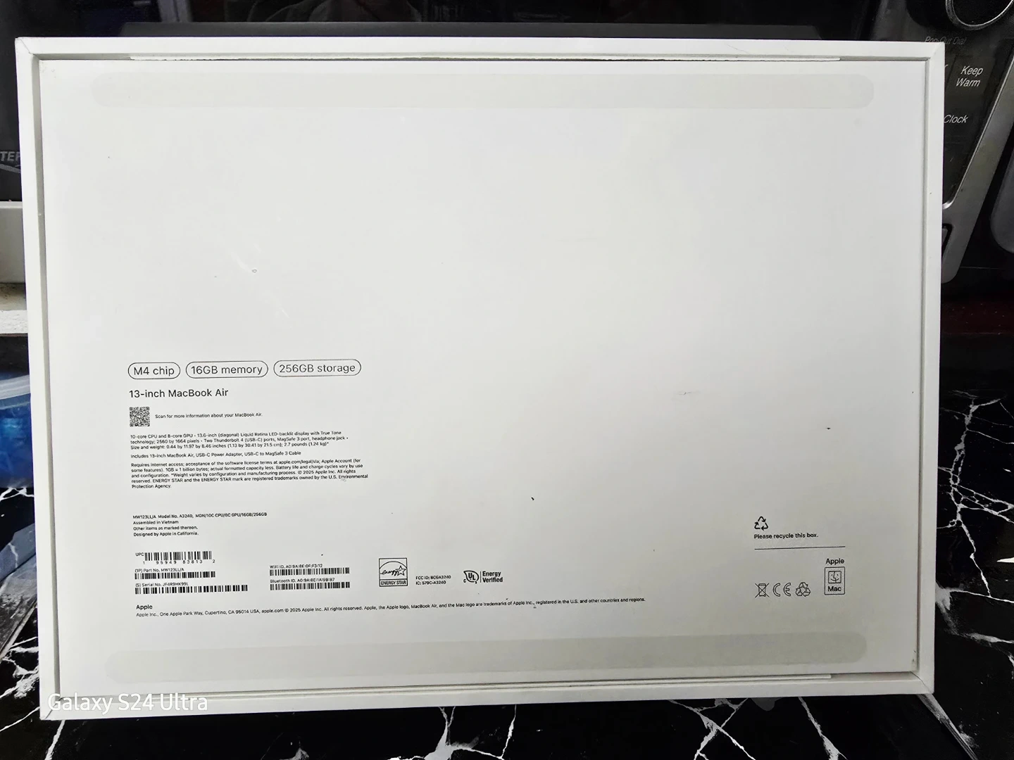 This is an empty box insert for a MacBook Air. It's designed to hold the laptop and accessories. Includes custom molded sections. Designed by Apple in California. This is for the empty box only, no computer. For Apple Macbook Air 13" M4 good for repacking or store the laptop for resale purposes. 13 in x 9.5 in x 2 in.
