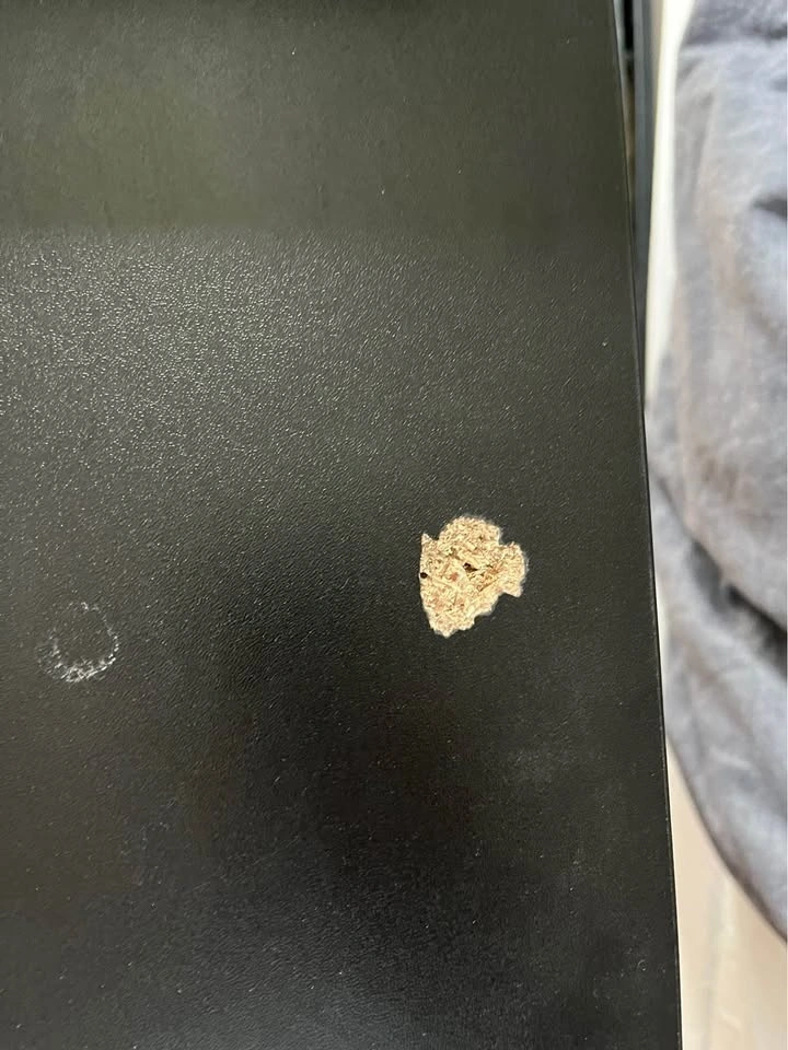The pouch on the side adds 4in to the length(L) and the shelf piece on top adds 4in to the height(H). There’s two splits in the wood where the screws for the support beam must’ve gone through.