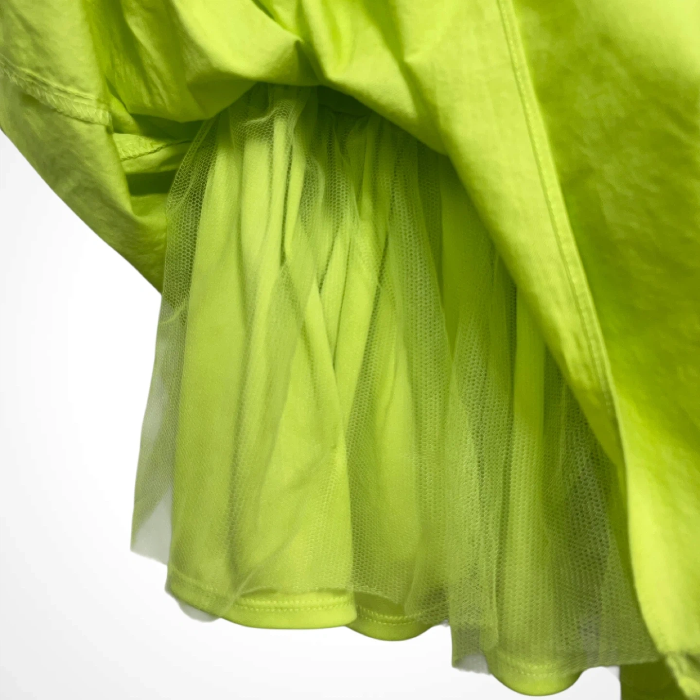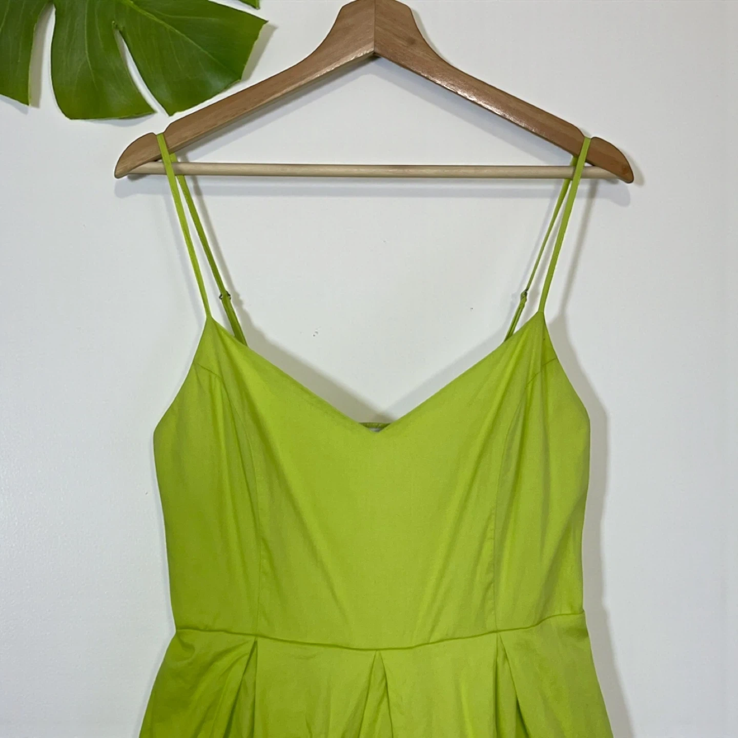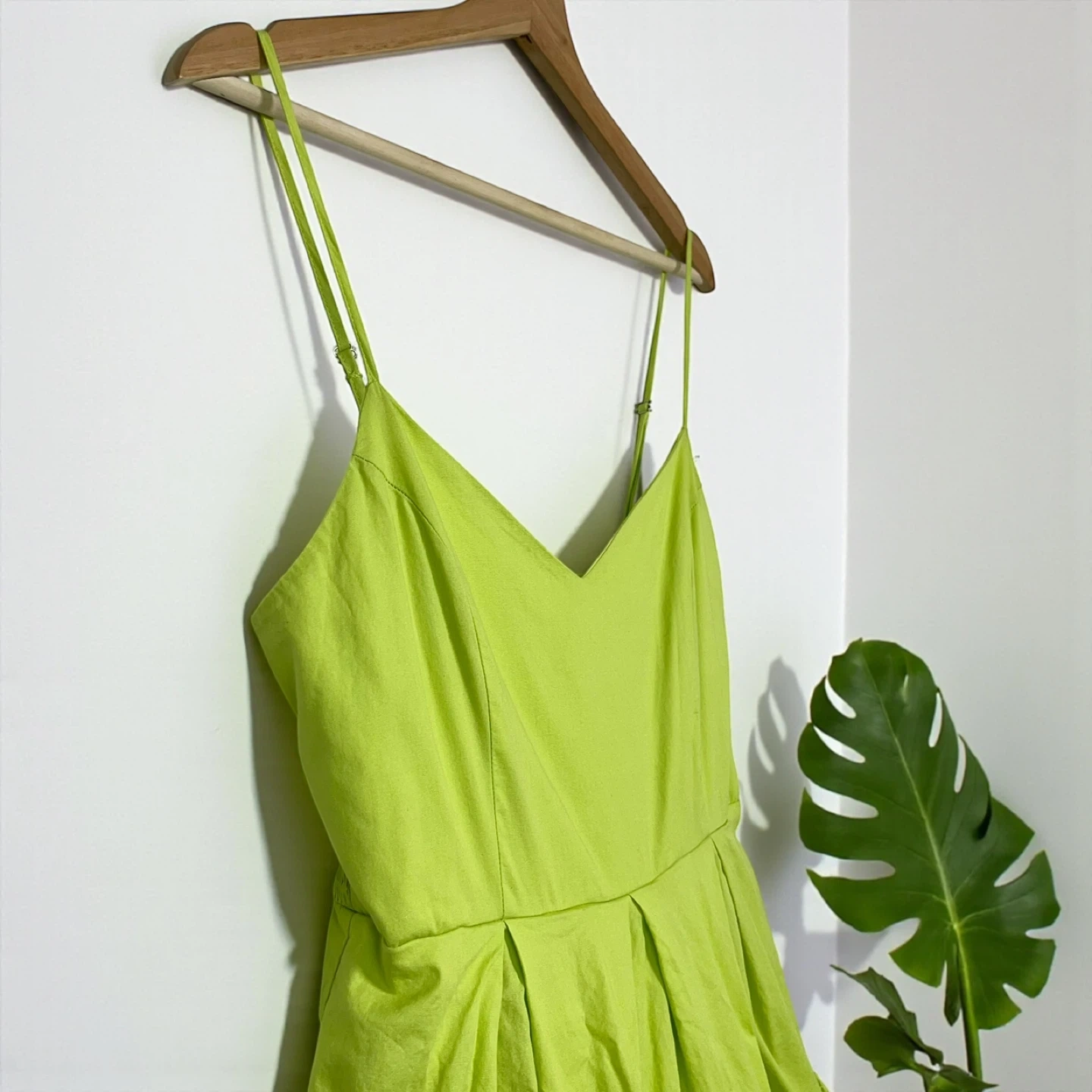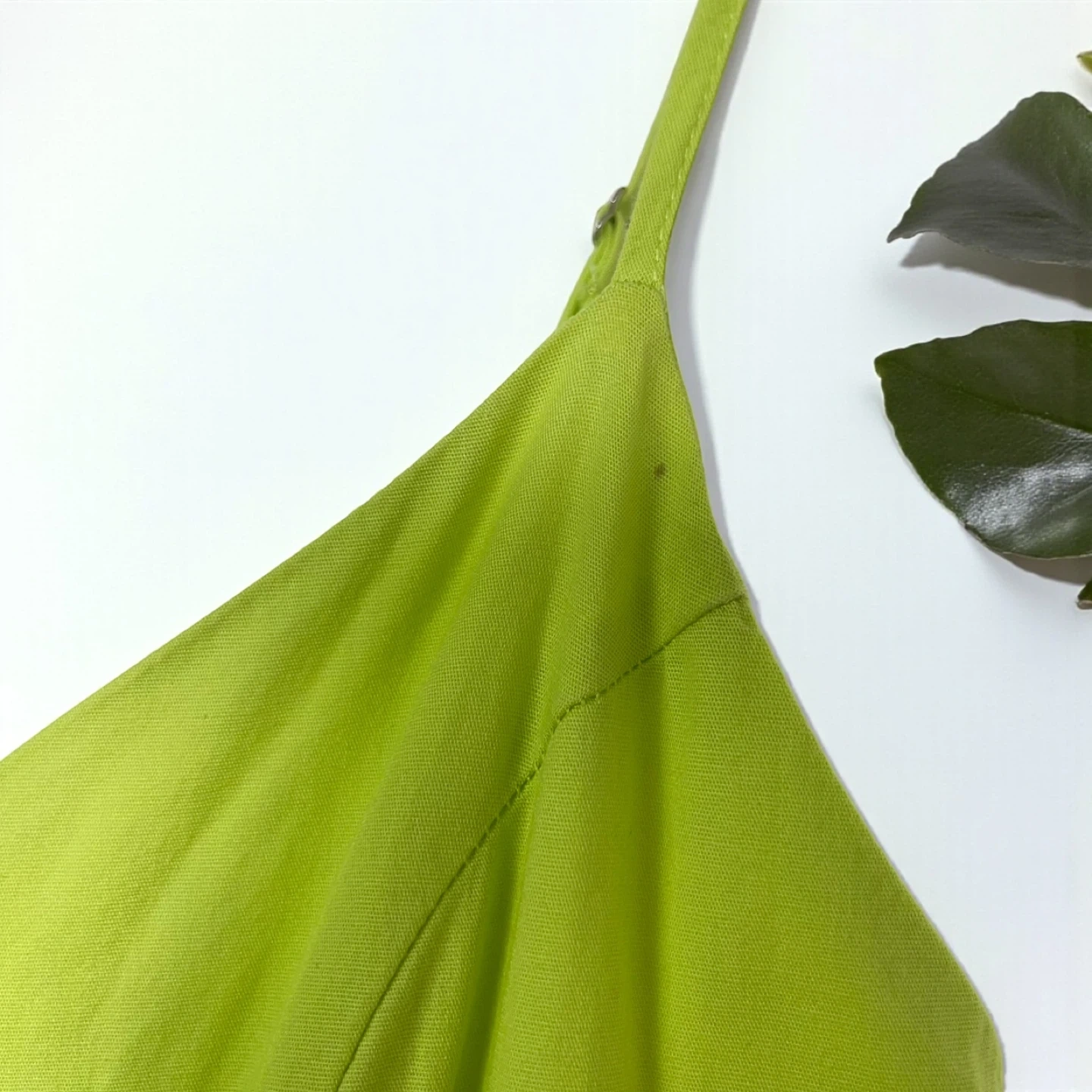 Designed in vibrant chartreuse / lime green cotton poplin, this fresh & flattering sundress by Hunter & Brown is the perfect warm-weather statement piece.