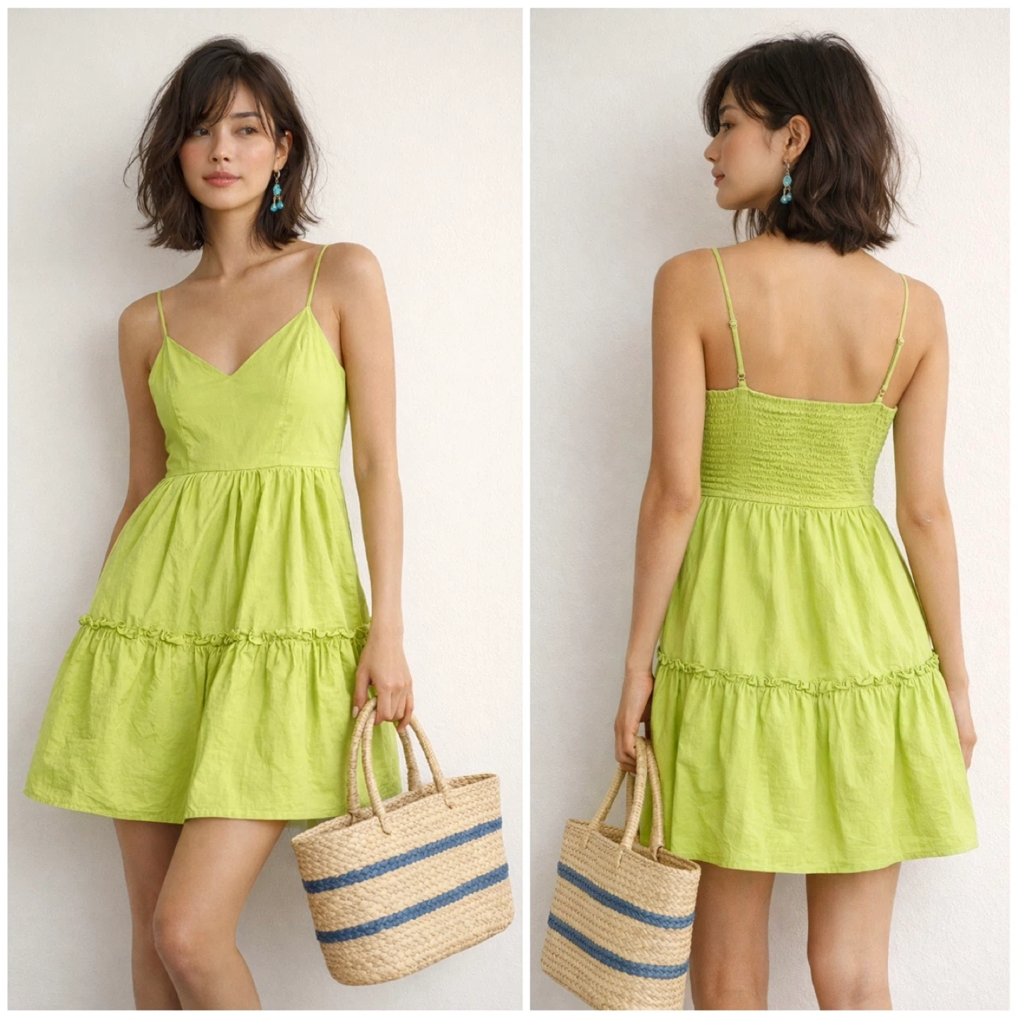 Hunter & Brown Lime Green Tiered Poplin Sundress