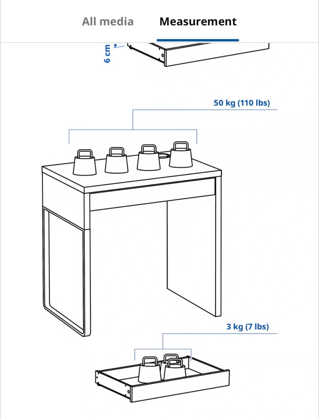 1 ikea MICKE desk. It is sturdy and the drawers slide perfectly.