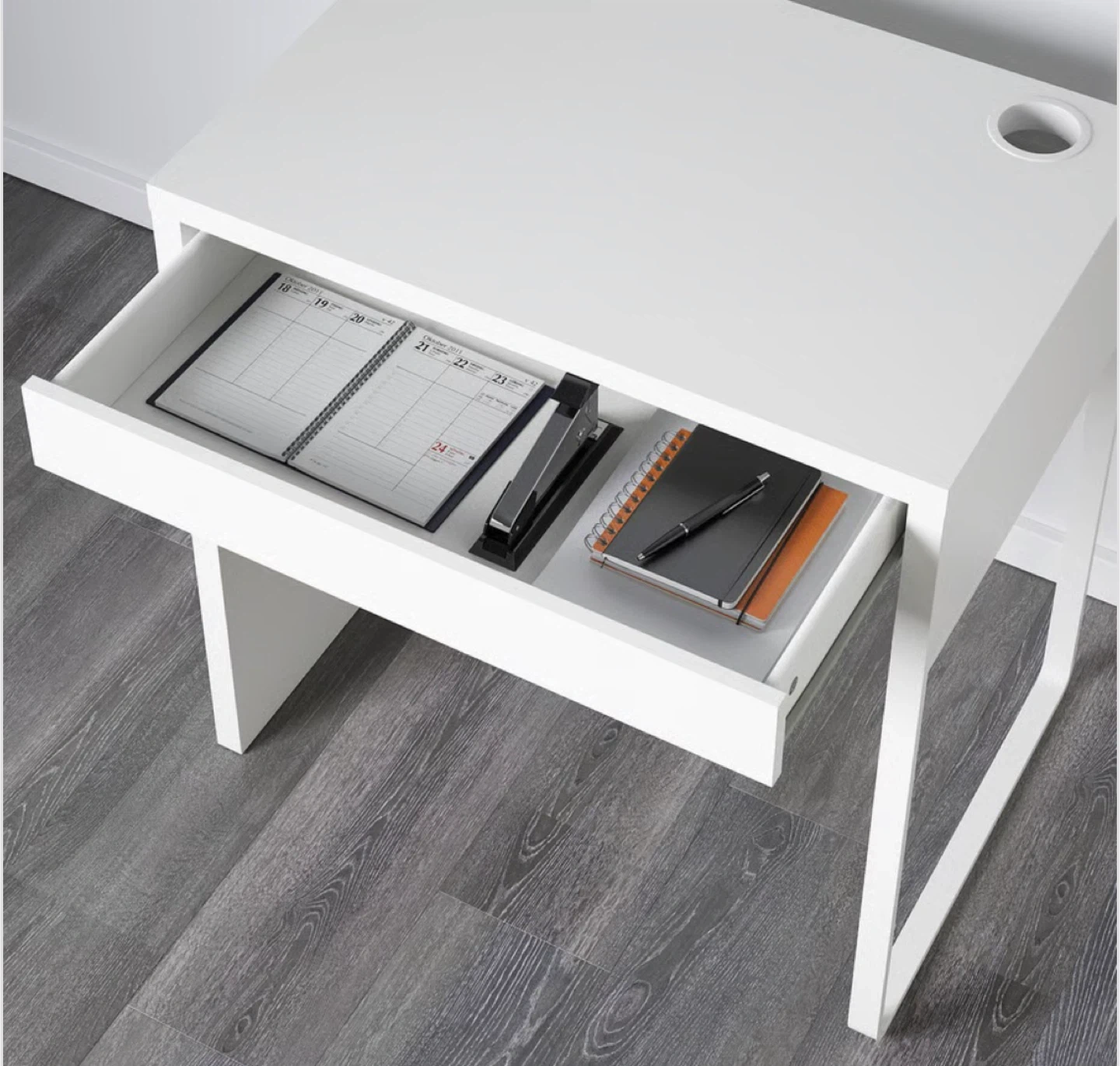 White IKEA MICKE Desk with Drawer