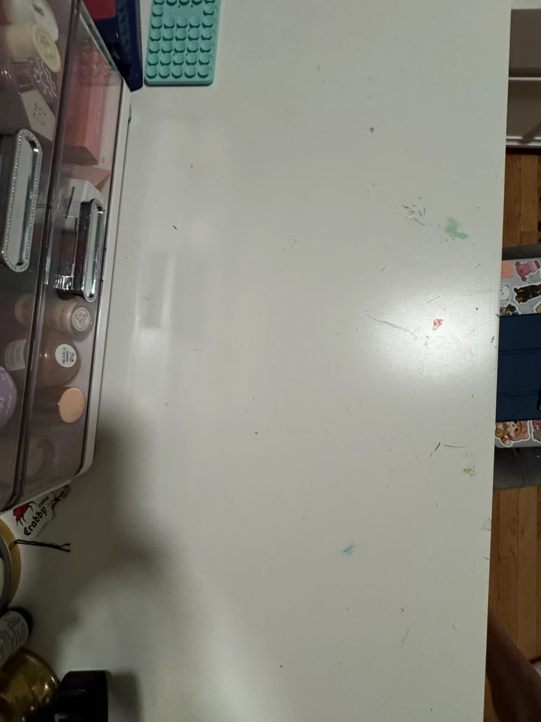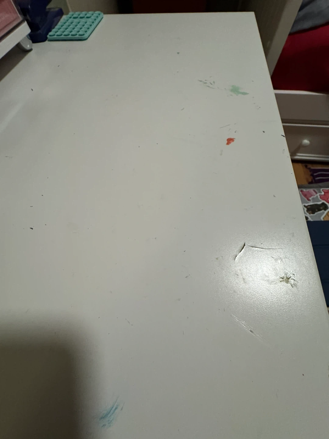 The desk top is scuffed from typical use (see last two pics).