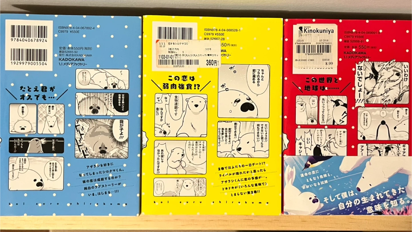 Books 1-3 in the Koisuru Shirokuma (A Polar Bear in Love) manga series by Koromo.