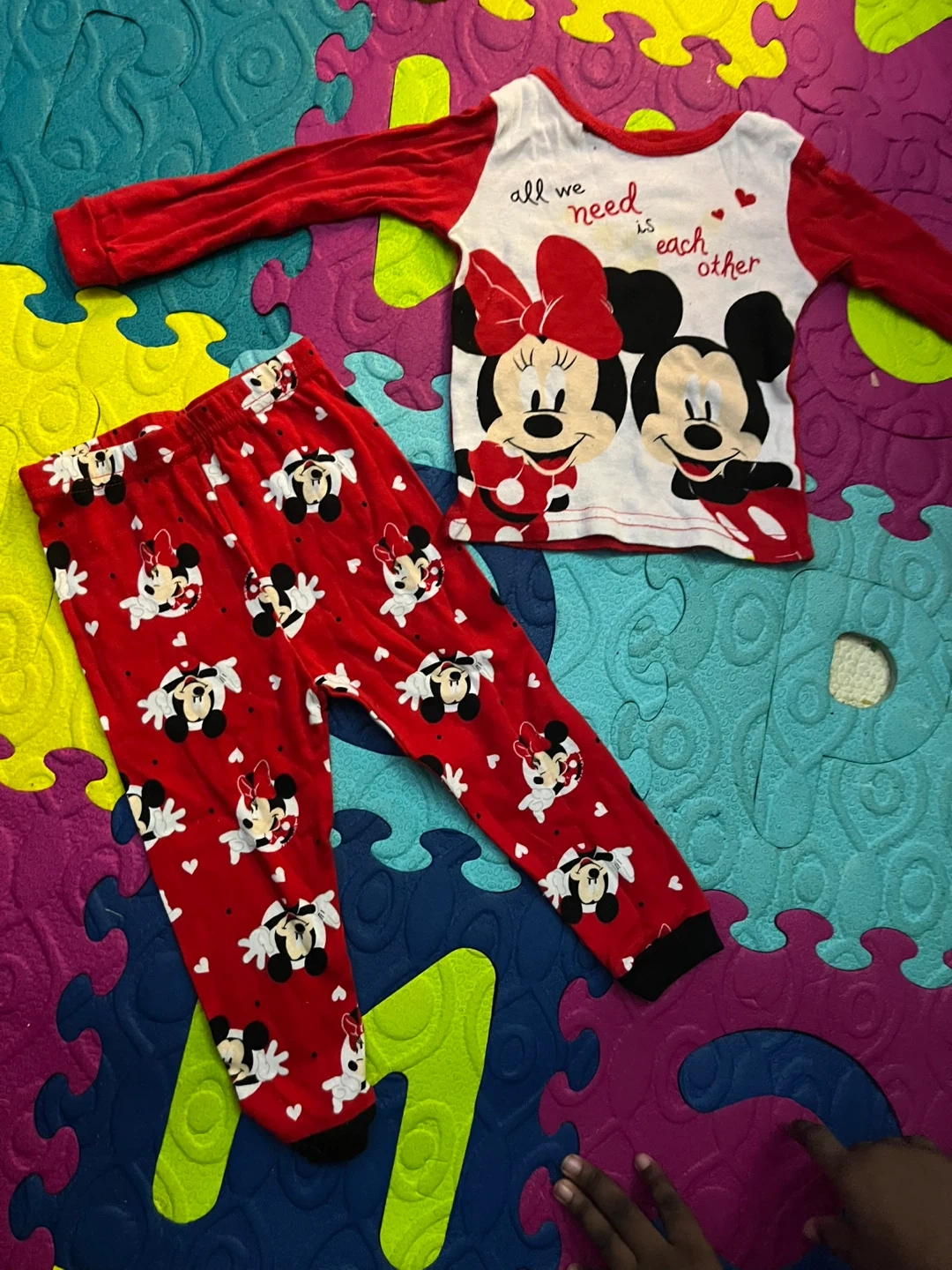 Disney Minnie & Mickey Mouse Pajama Set - Size 24 Months