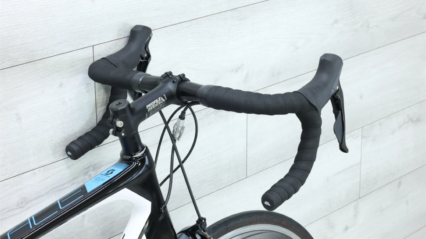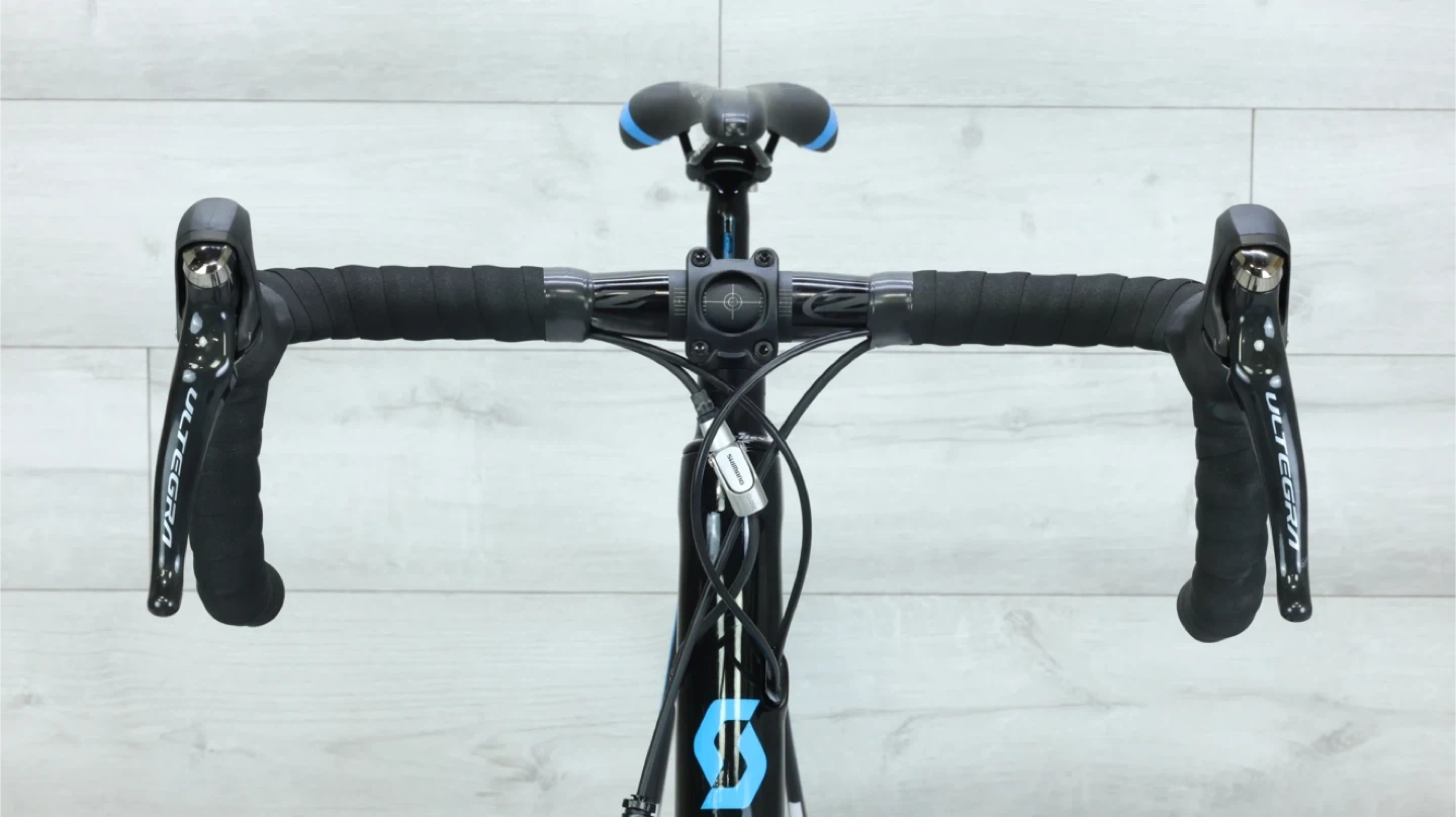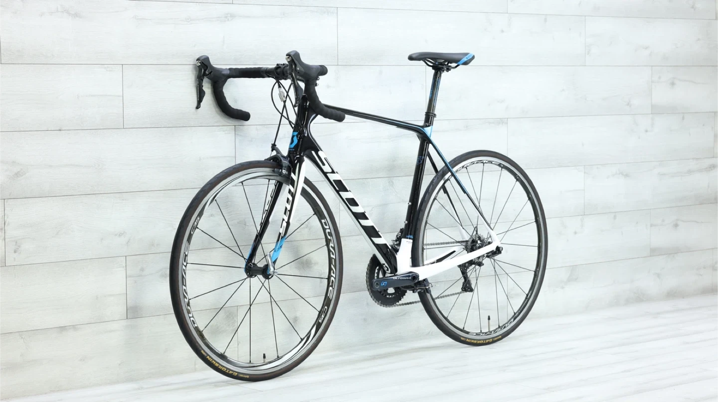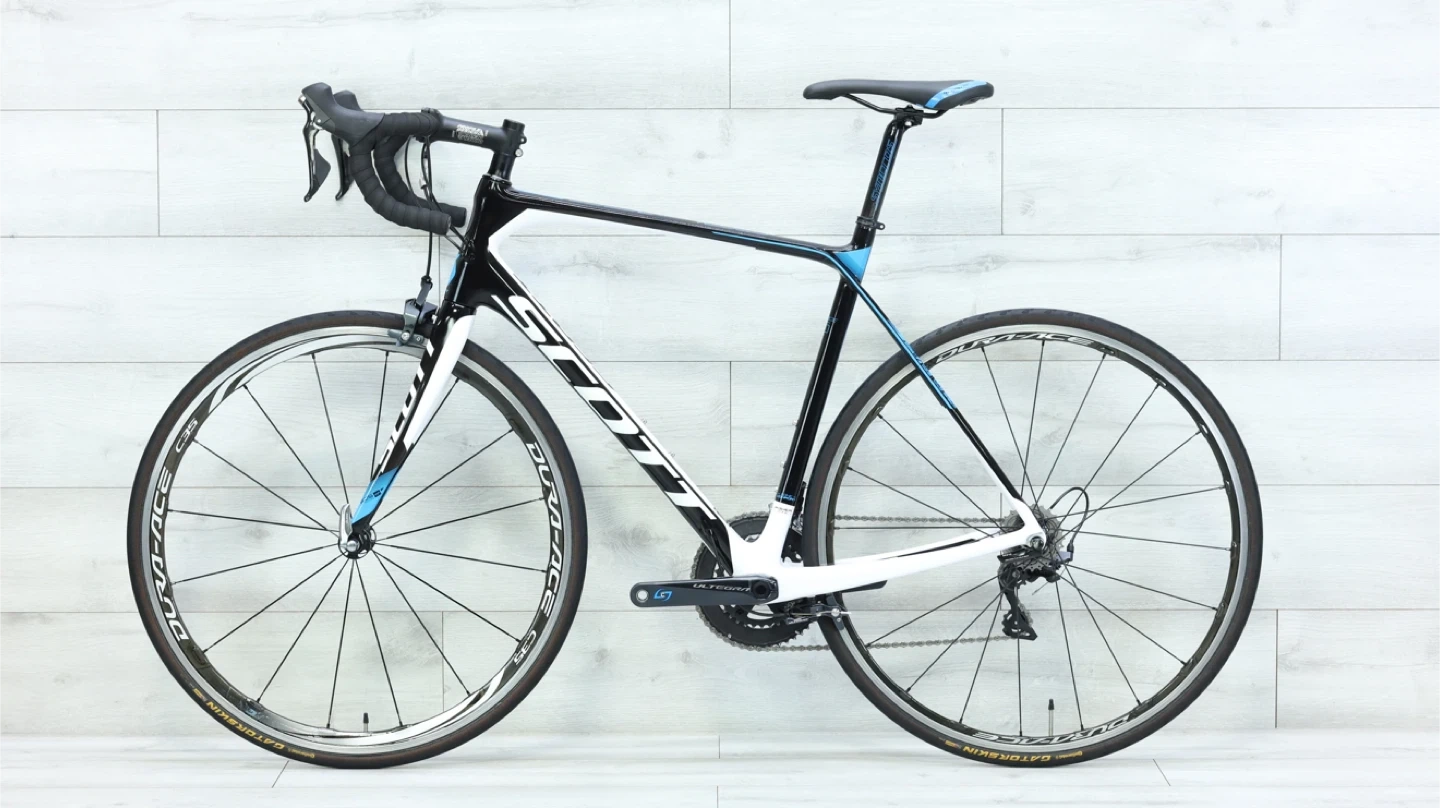 Scott Speedster 20 road bike in black and white with blue accents. Features Shimano Ultegra components. This bike is ready for your next ride!