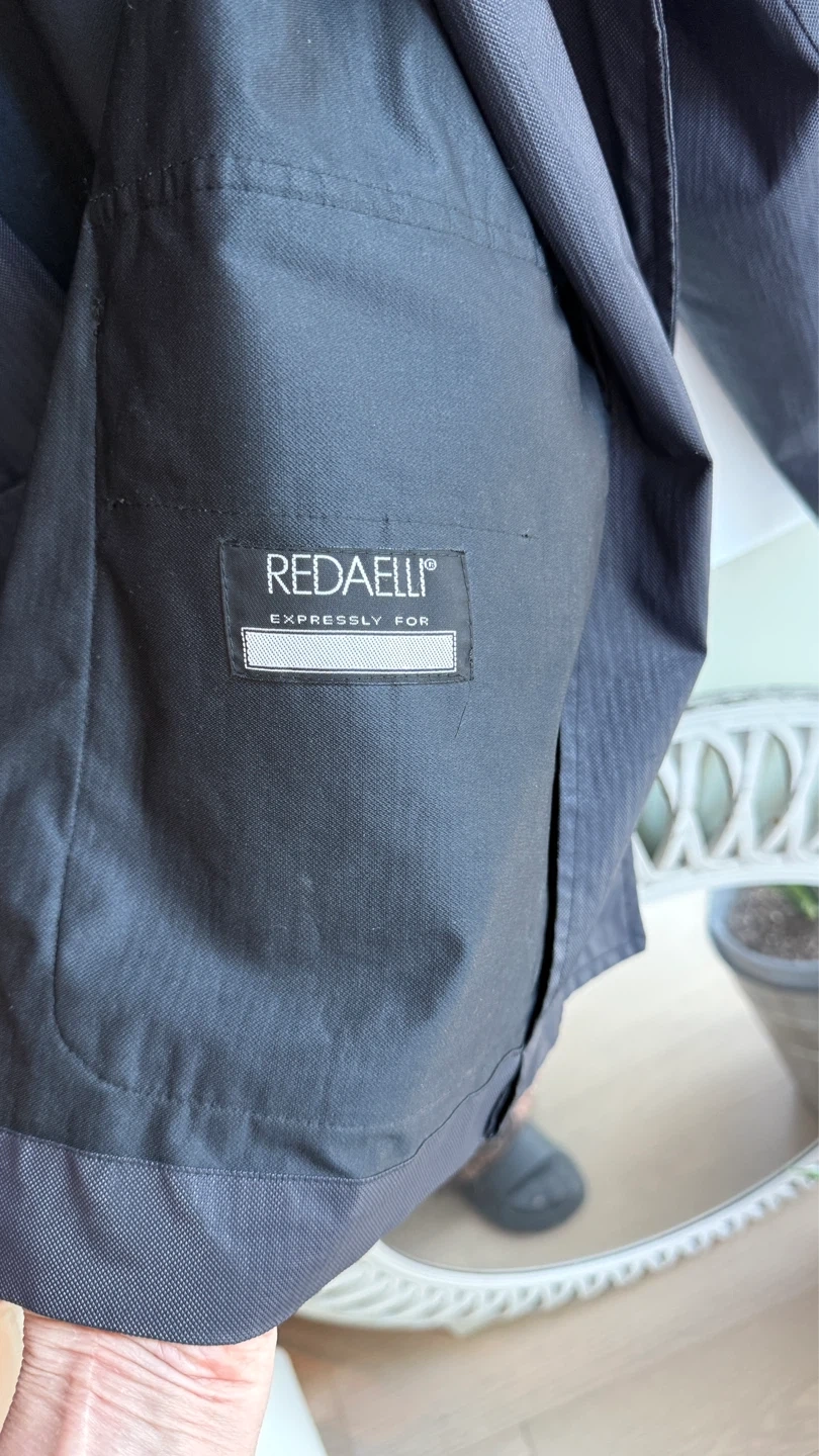 Redealli Black work jacket features a zip and snap closure. It has multiple front pockets and a collared neckline.