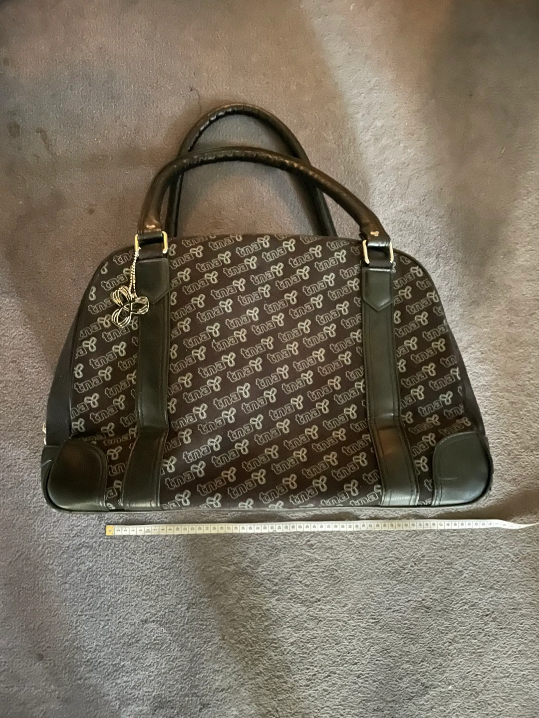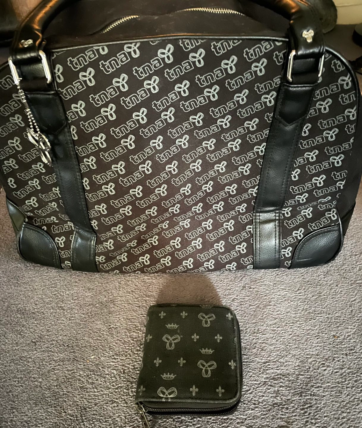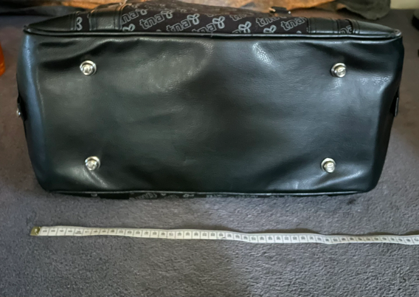 Excellent condition gently used TNA travel bag. The bag is made of a sturdy canvas material and the straps are black vegan leather.