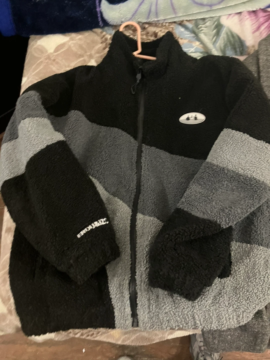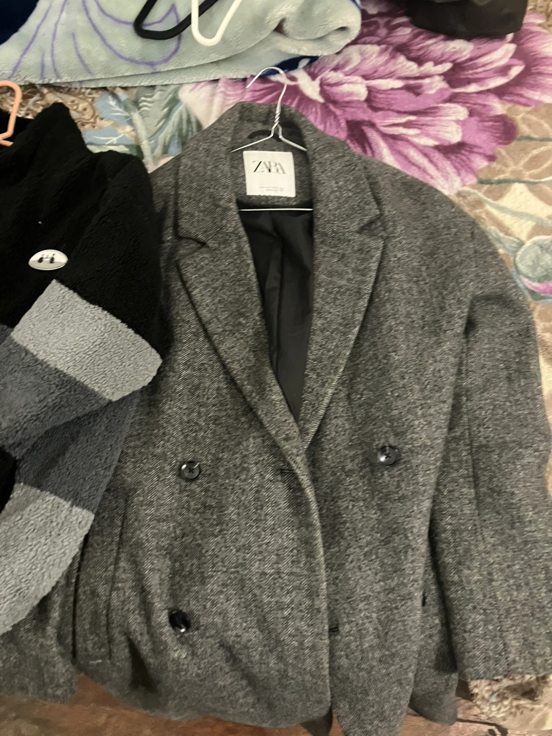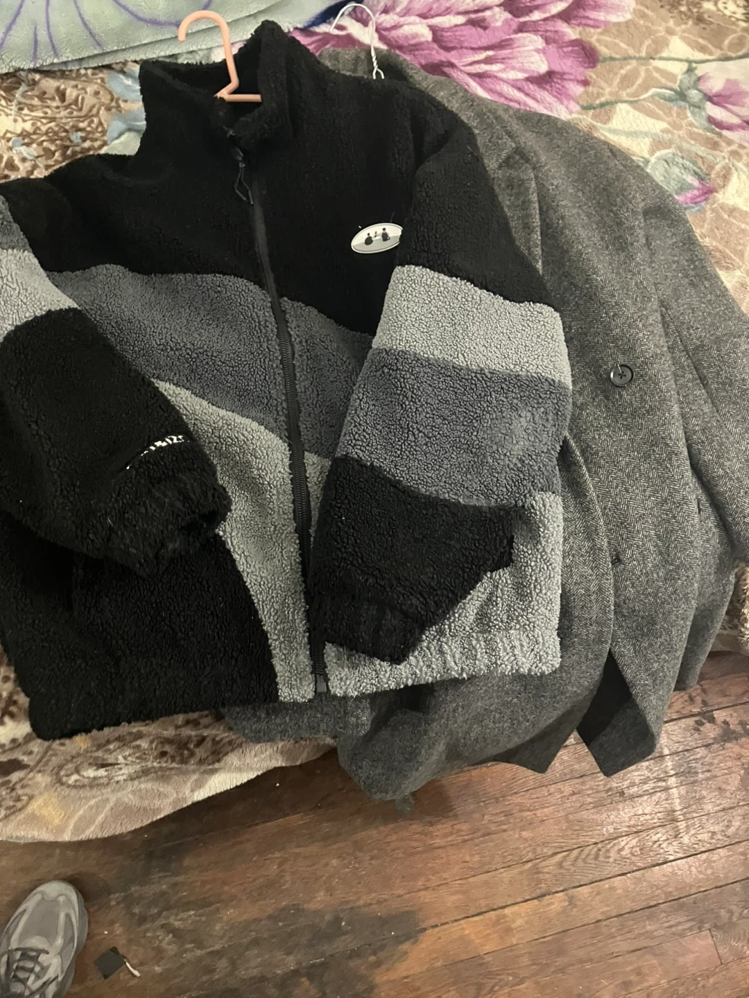 black/gray fleece jacket with a Zara Peacoat- heather grey