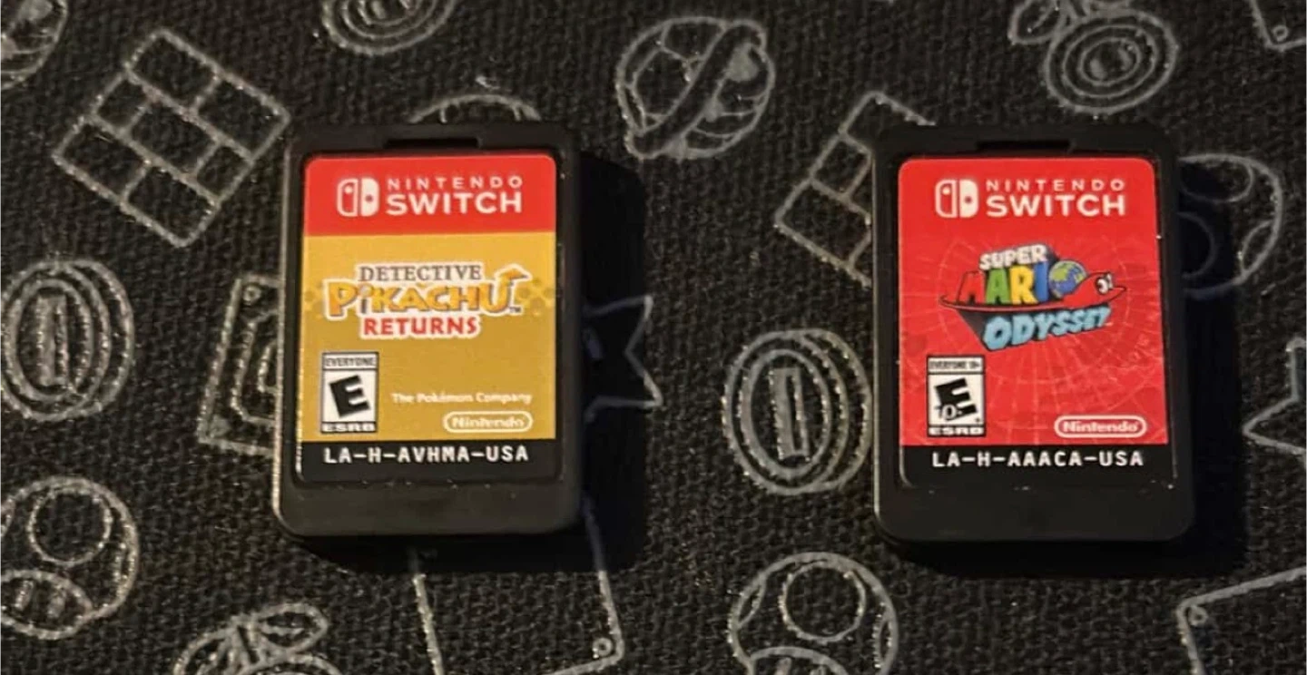 Includes Super Mario Odyssey and Detective Pikachu Returns for Nintendo Switch. These are cartridge-only games, no cases included. Or best offer need cash