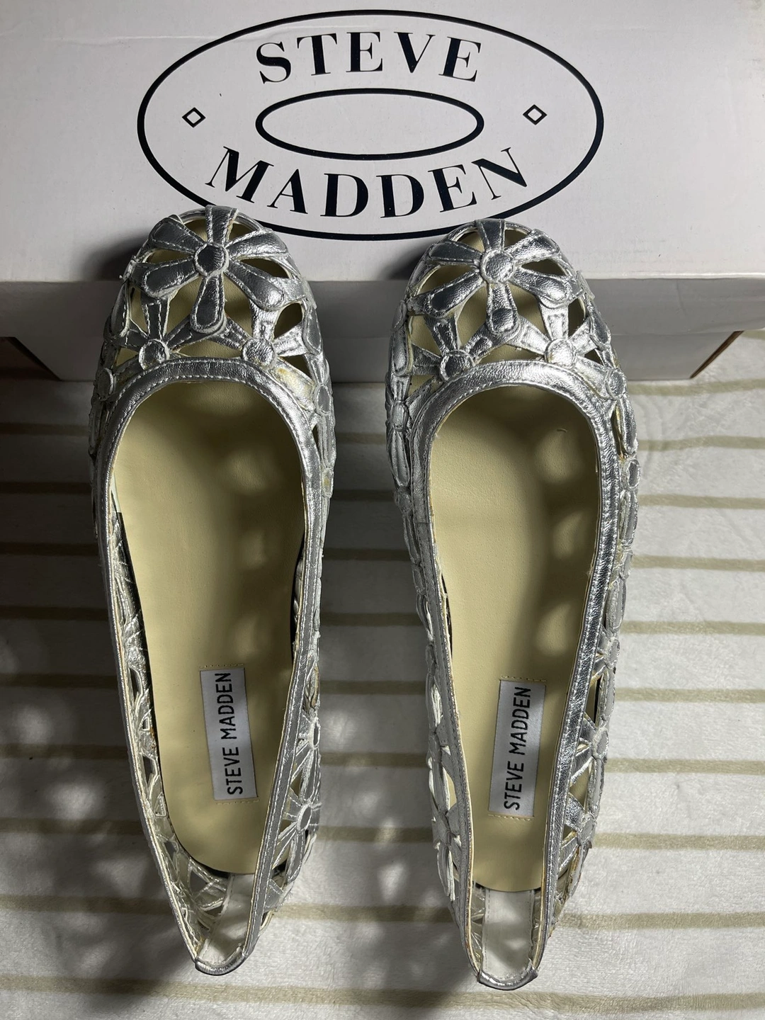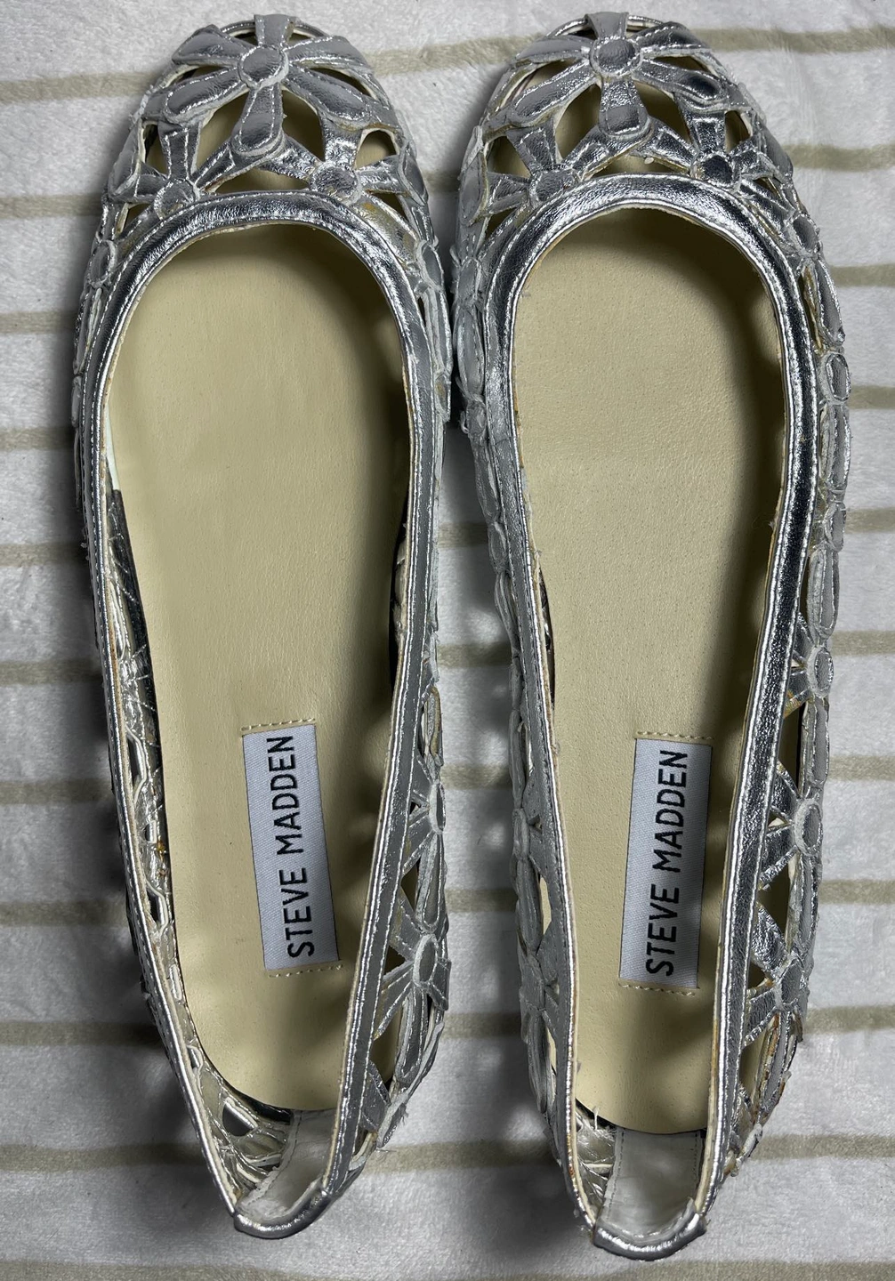 Steve Madden Silver Leather Flats. Try on before you buy. 💥Buy 2 different gifts from my account, and take 10% off both!!!💥
