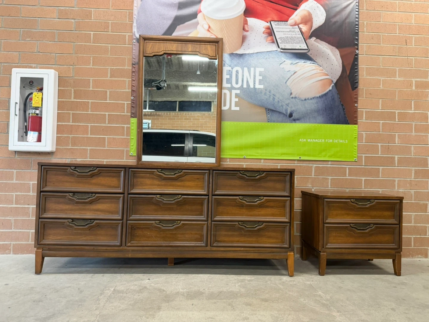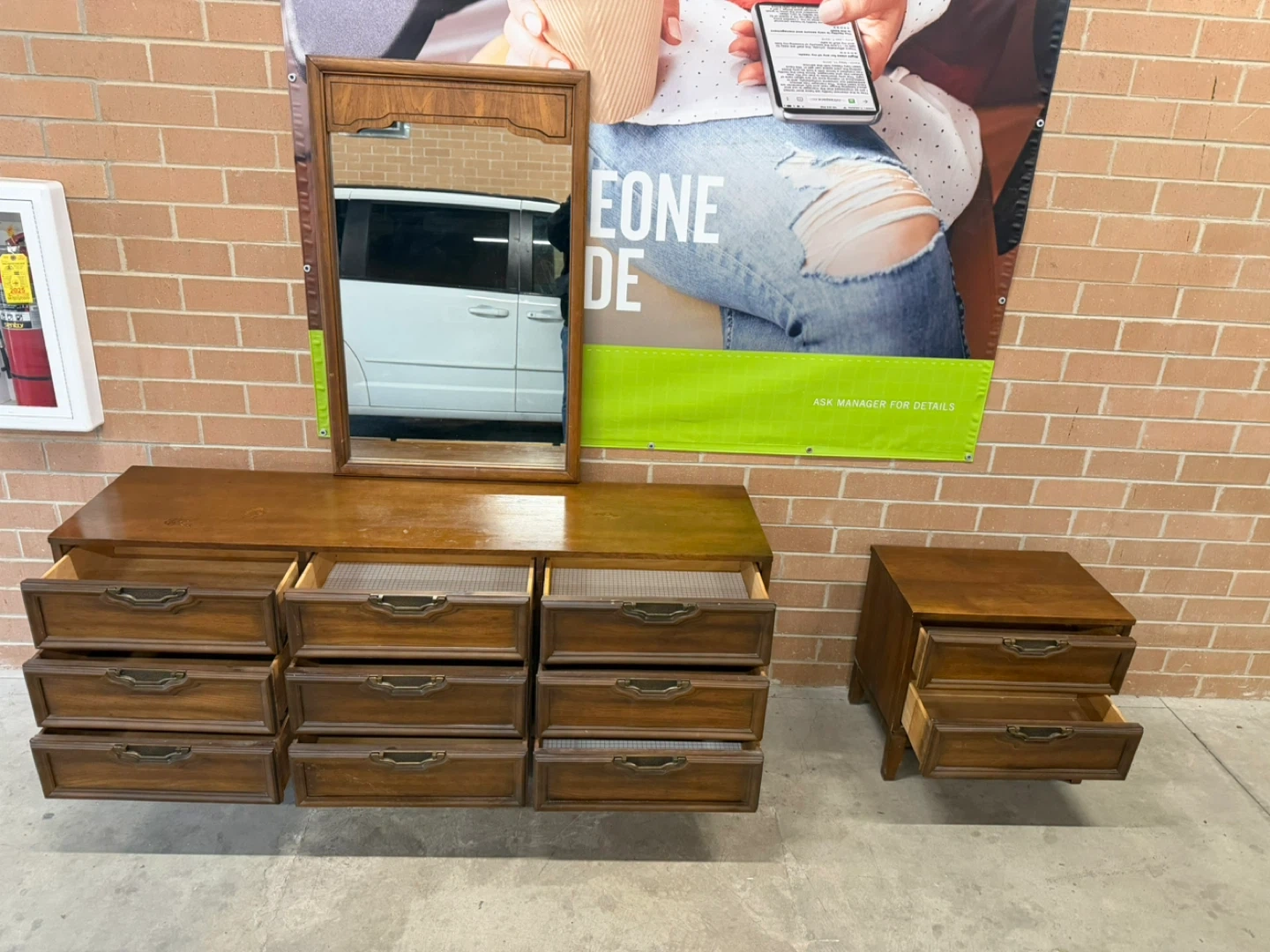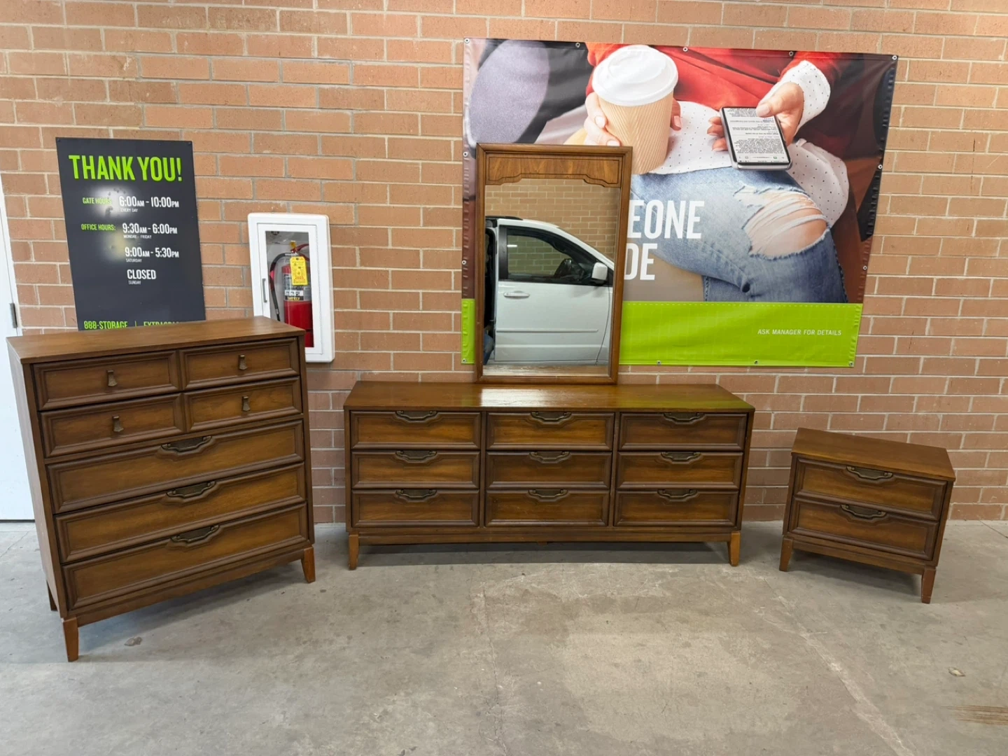 MCM Set of 3 pieces, Long Dresser, Tallboy and Nightstand.