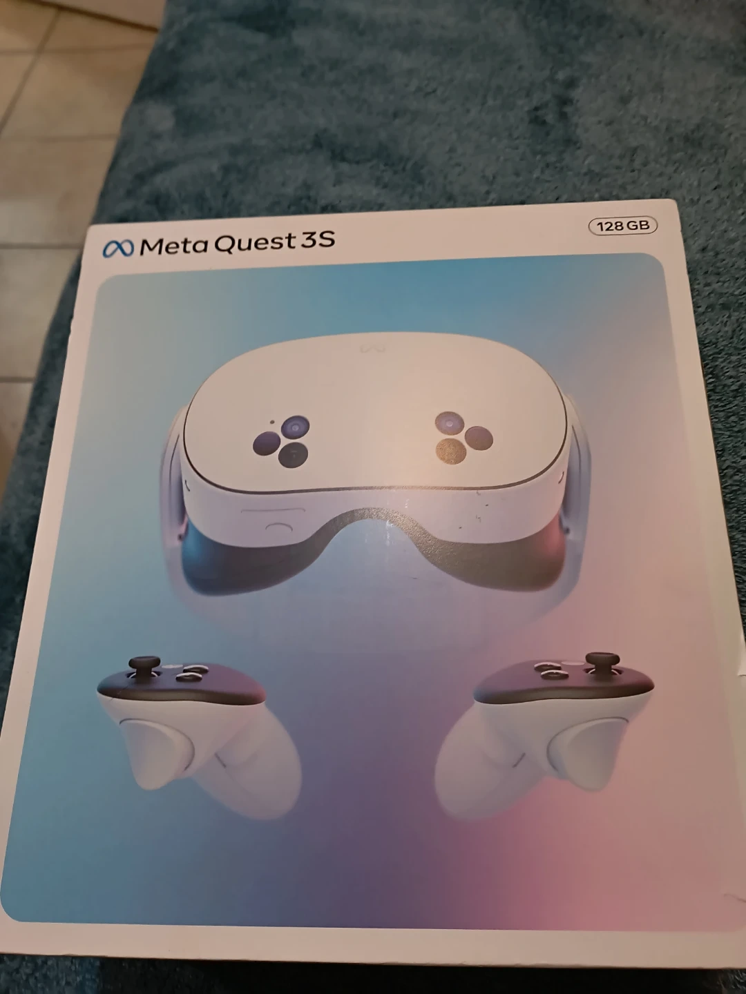 This is a Meta Quest 3S VR headset with 128GB of storage. It comes with controllers. It's ready for your next virtual adventure!