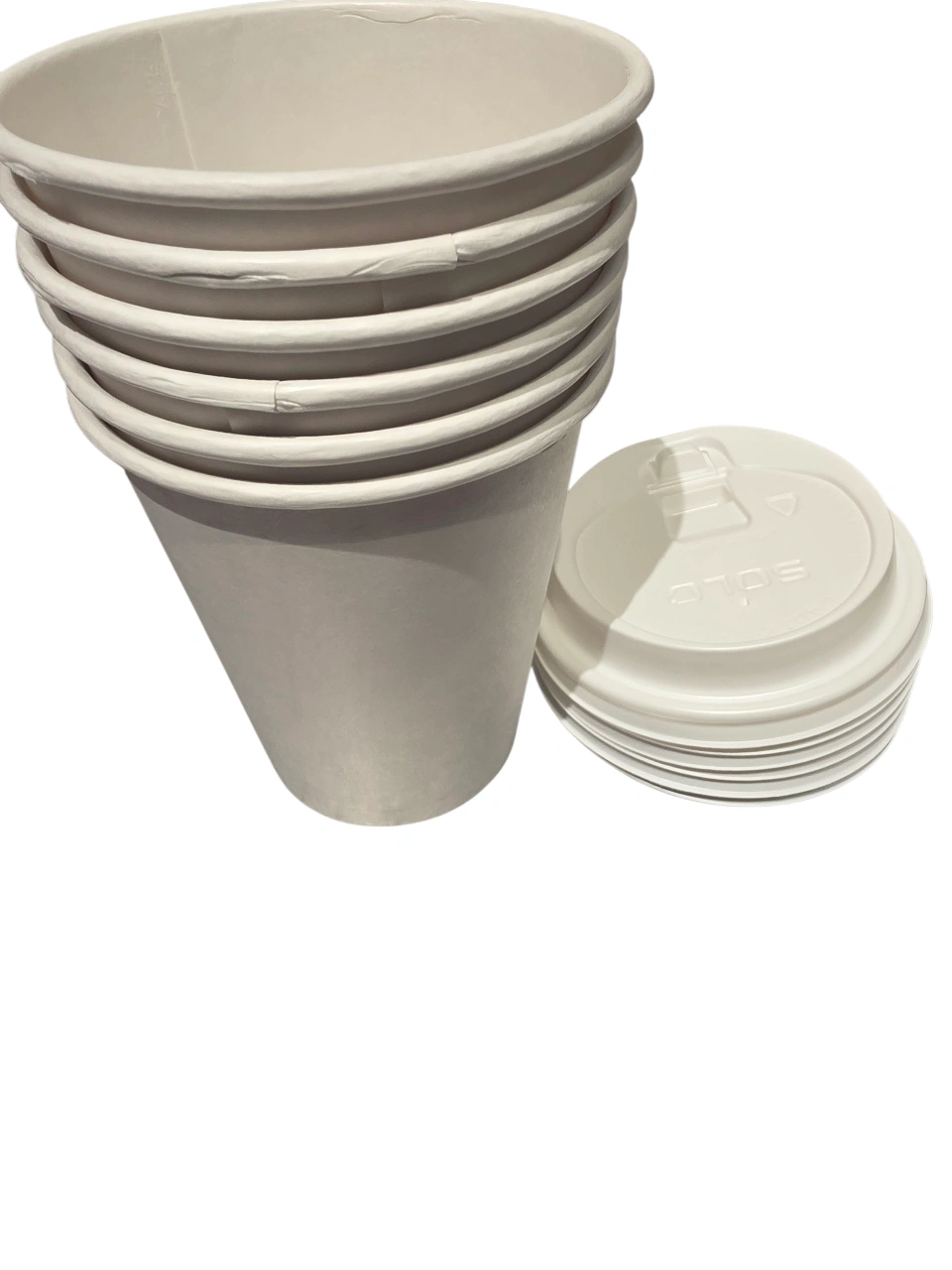Selling a stack of Solo paper cups with lids. Great for parties, events, or everyday use. They are in good condition and ready to go!