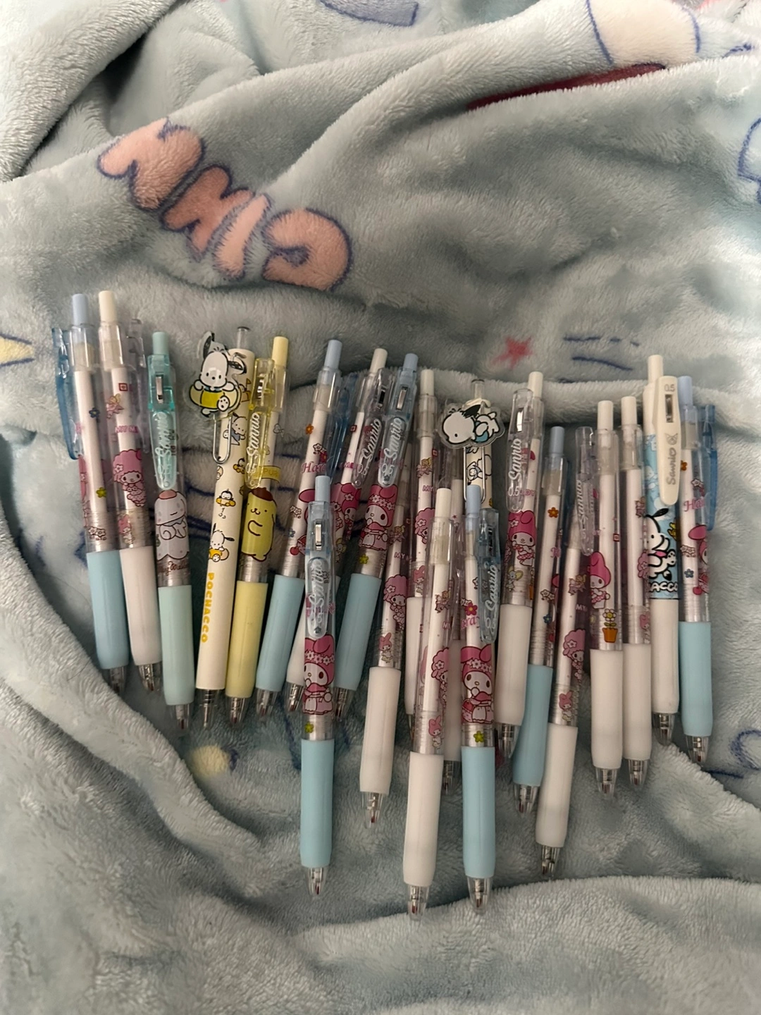 Selling a bunch of adorable Sanrio pens. They feature cute designs of My Melody, Pochacco, and other beloved characters. Perfect for adding a touch of kawaii to your stationery collection!