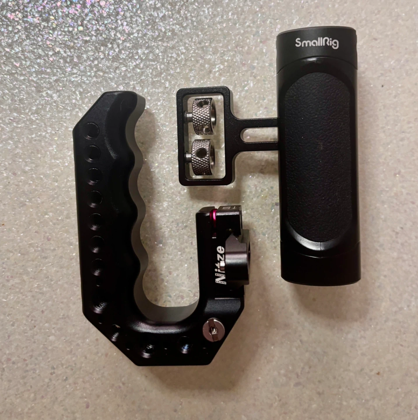 * SmallRig Cage & Handles – cage ($43), mini side handle ($27), Nitze Stinger top handle + NATO rail ($65)