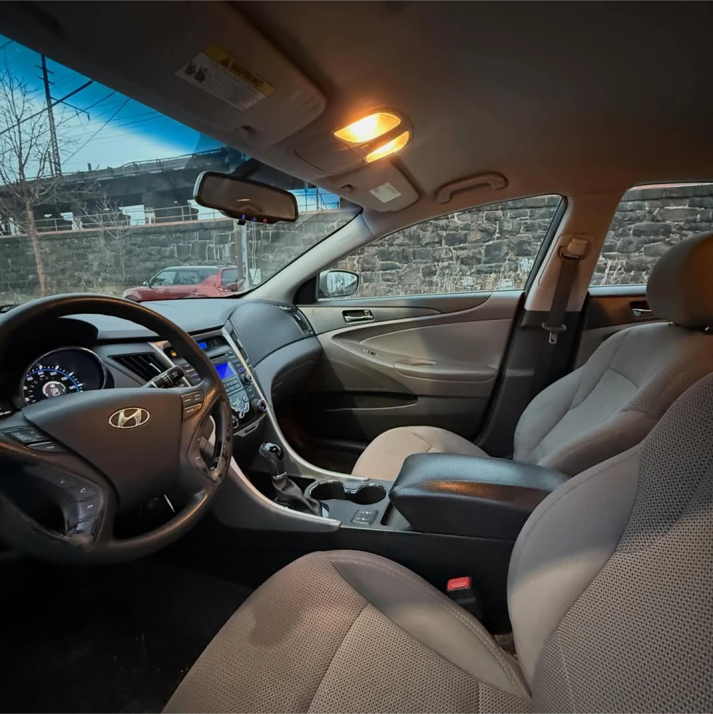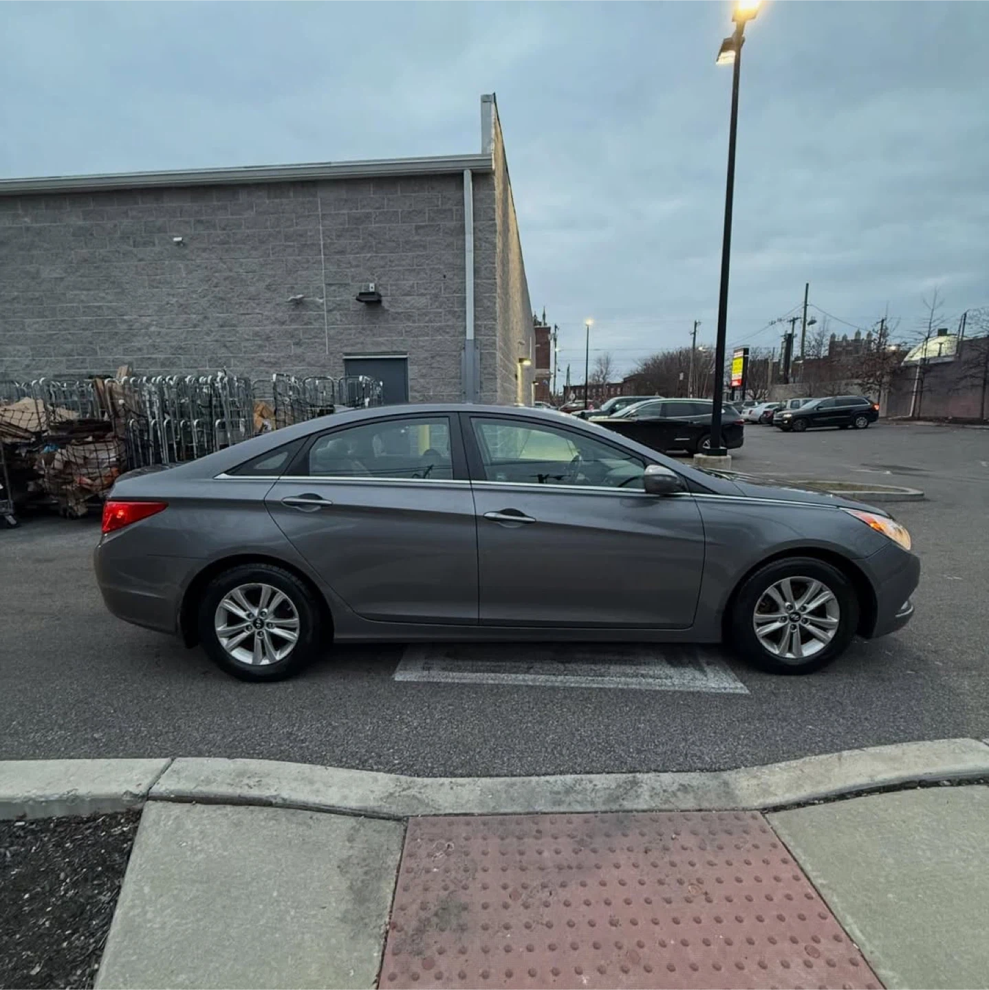 This is a gray Hyundai Sonata sedan. It features a comfortable interior with cloth seats. The car runs smoothly and is ready for a new owner!