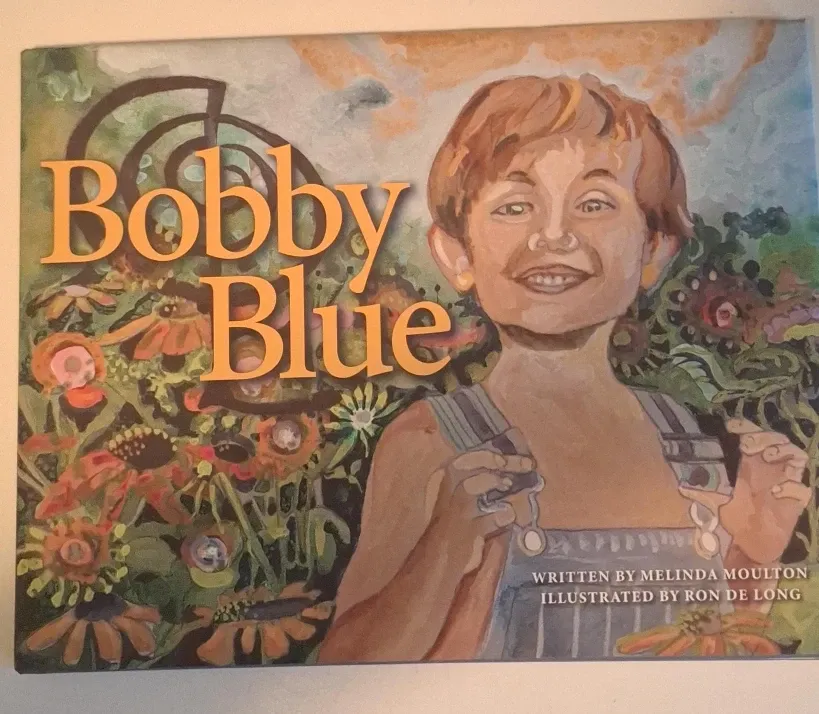 This is the children's book "Bobby Blue". It's written by Melinda Moulton and illustrated by Ron de Long. This book is great for young readers! also this individual copy is personally Autograghed by Melinda Moulton