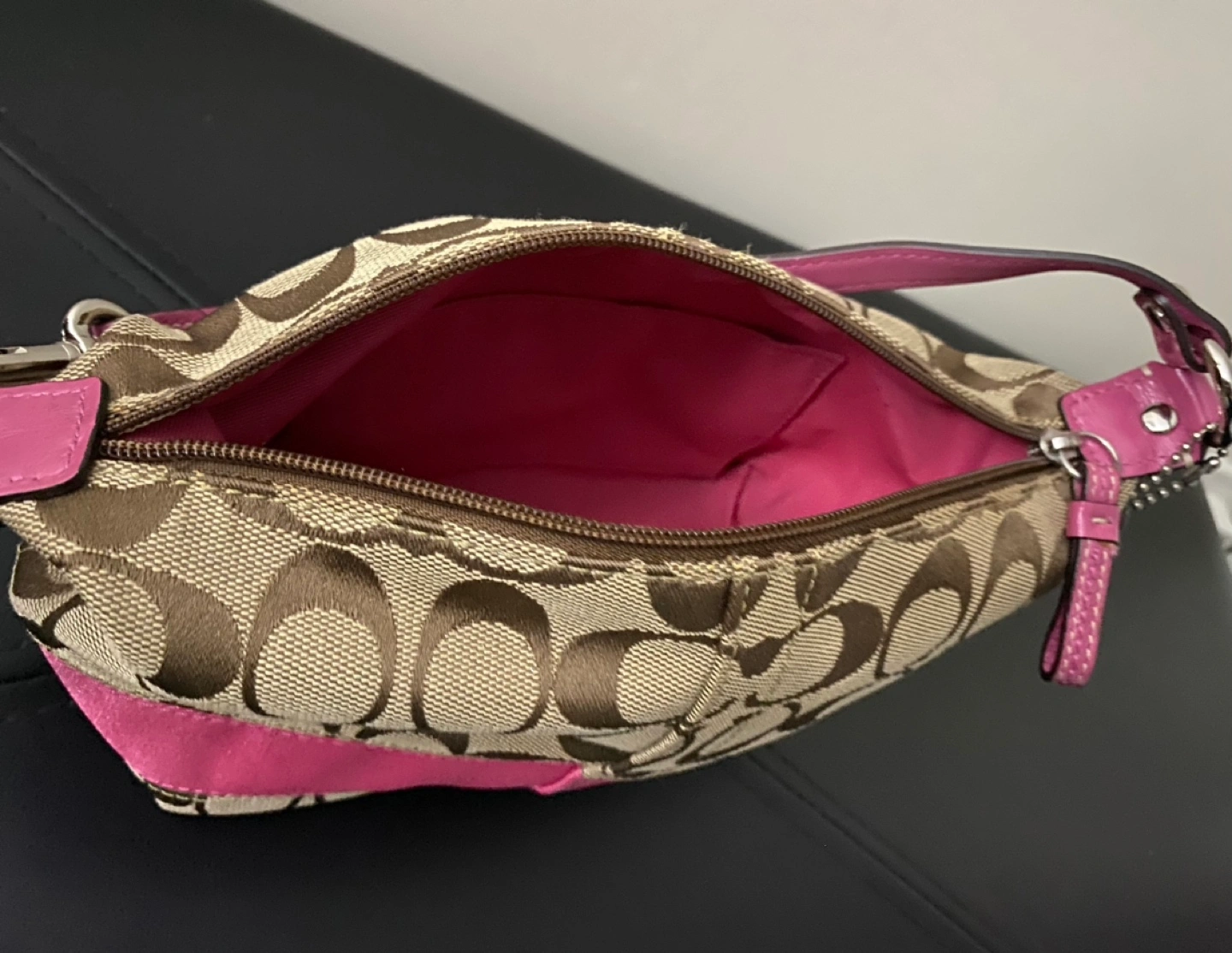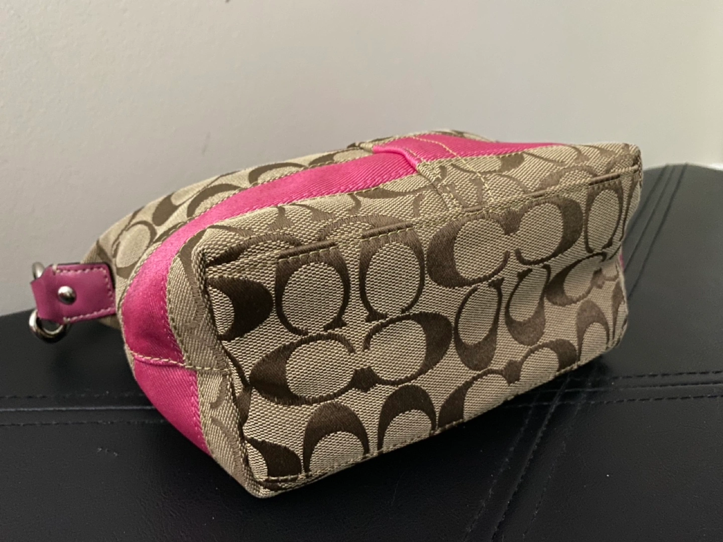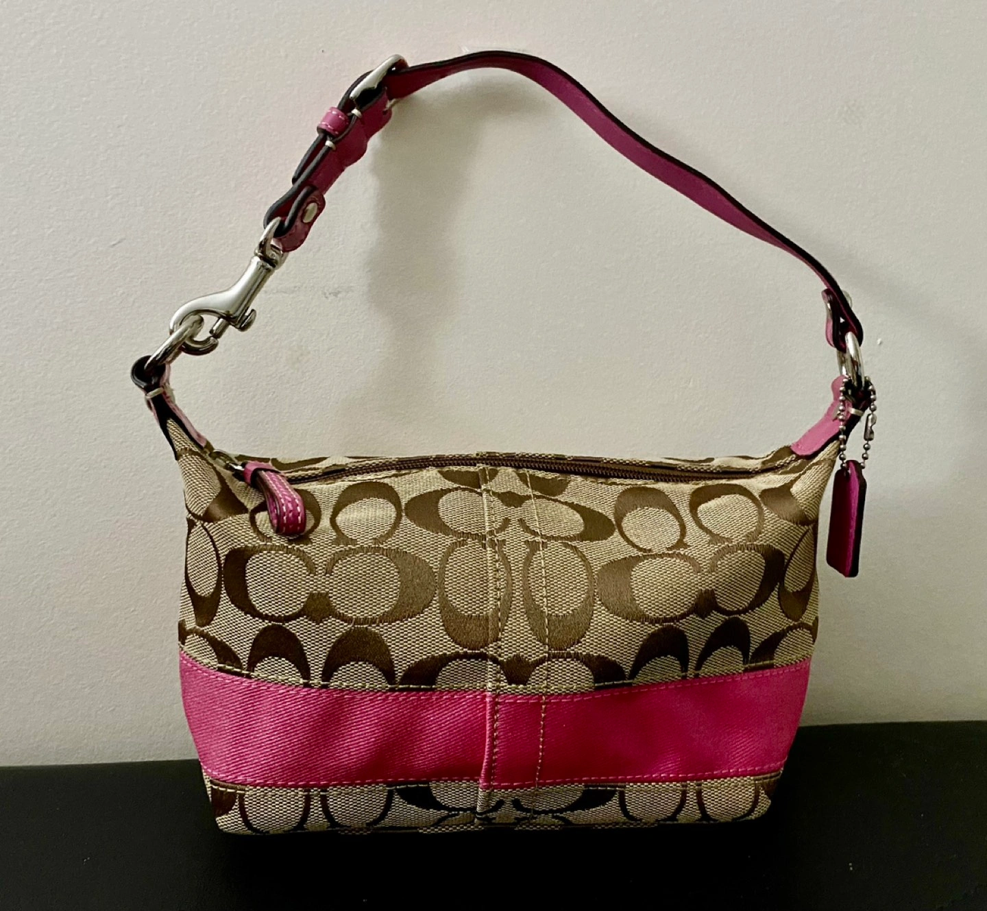 Coach Mini Handbag Canvas & Leather Logo Hobo Purse Color: Pink Size: 5.5”H x 7”W x 3.5”D Excellent Condition