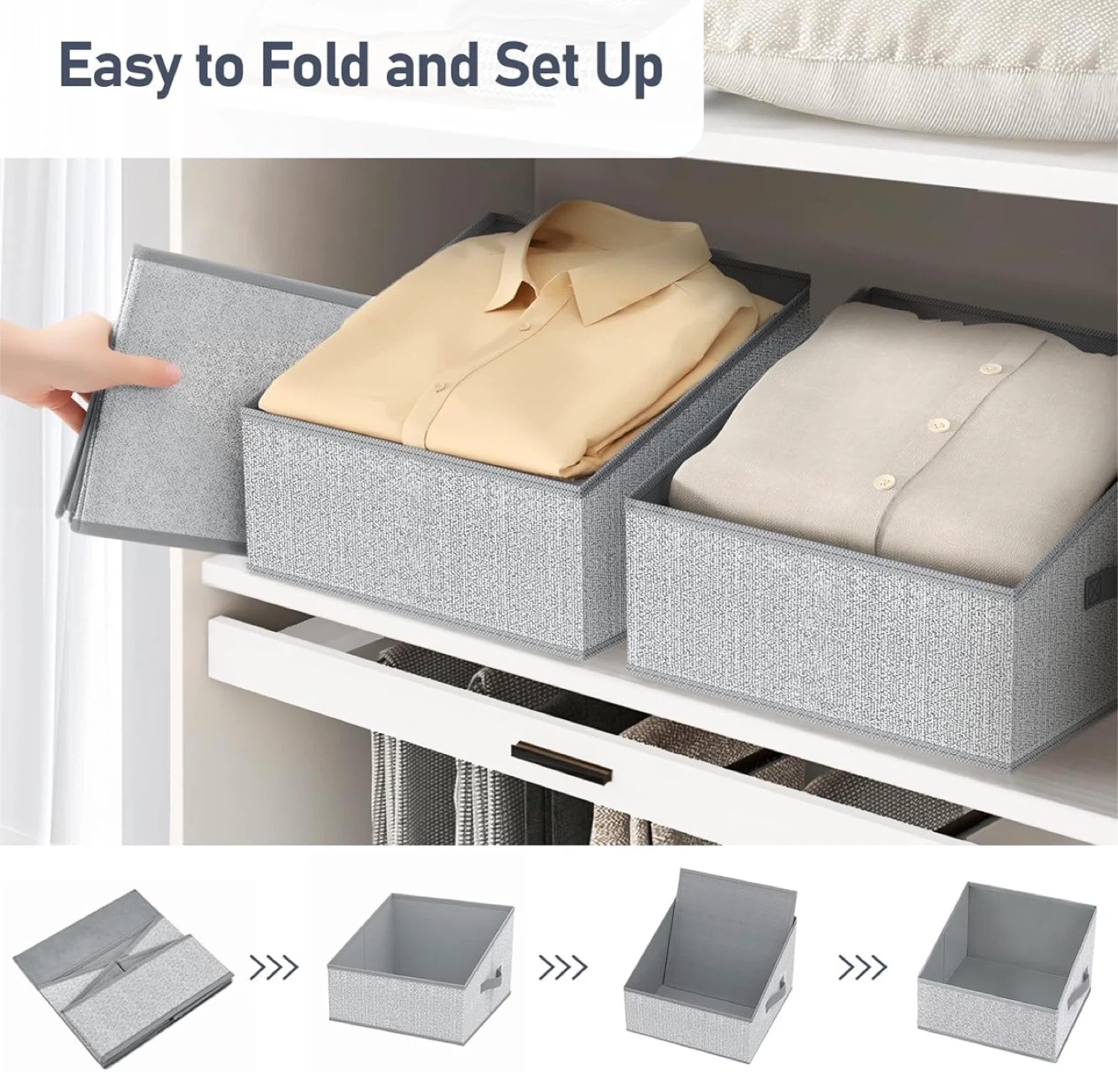 Closet Storage Bins - Fabric Storage Baskets for Shelves, Collapsible Closet Organizers and Storage with Handles, Trapezoid Shelf Organization Storage Cubes for Purse, Toys, Books, Towel, Socks