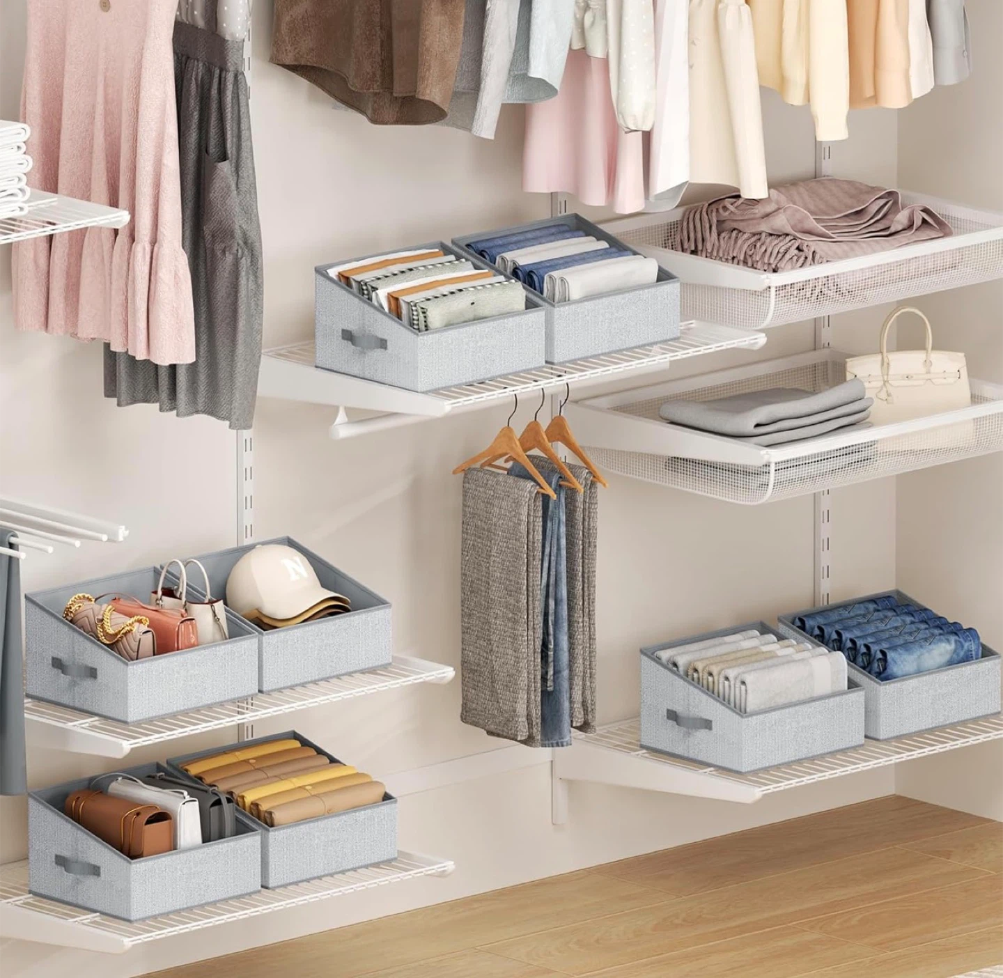 Closet Storage Bins - Fabric Storage Baskets for Shelves, Collapsible Closet Organizers and Storage with Handles, Trapezoid Shelf Organization Storage Cubes for Purse, Toys, Books, Towel, Socks