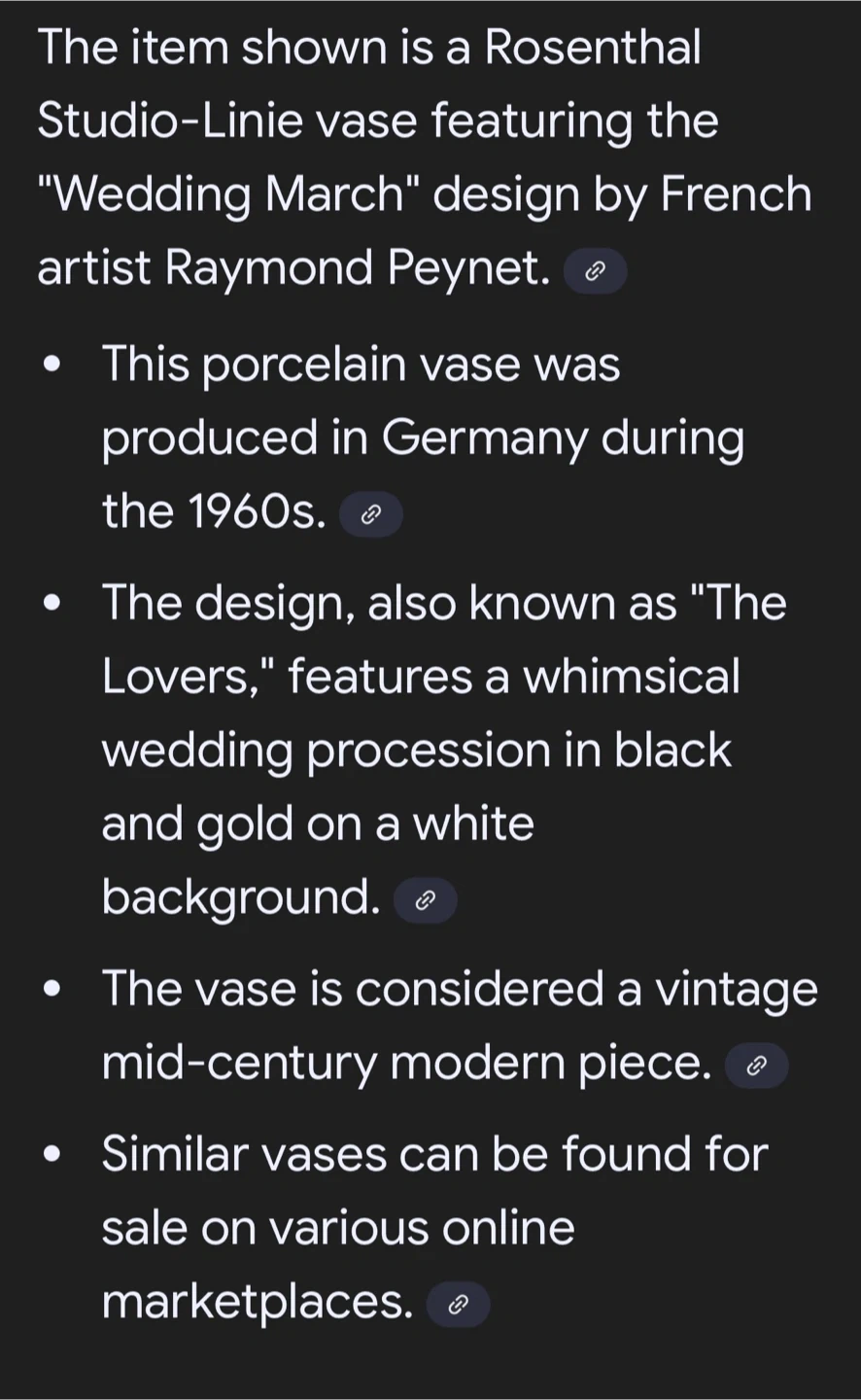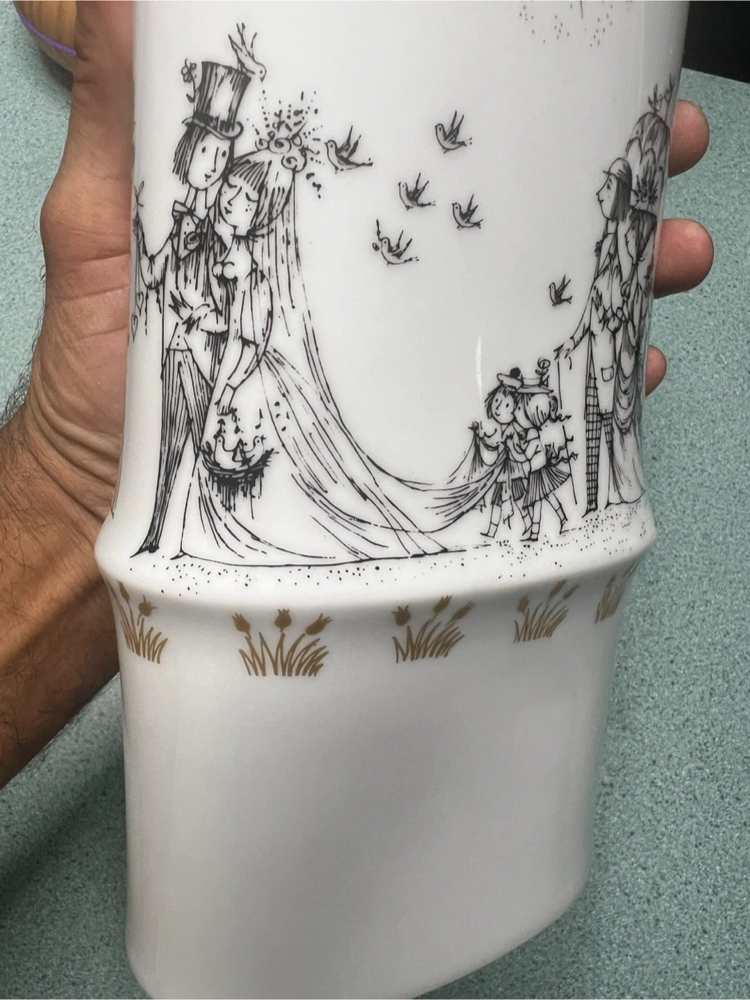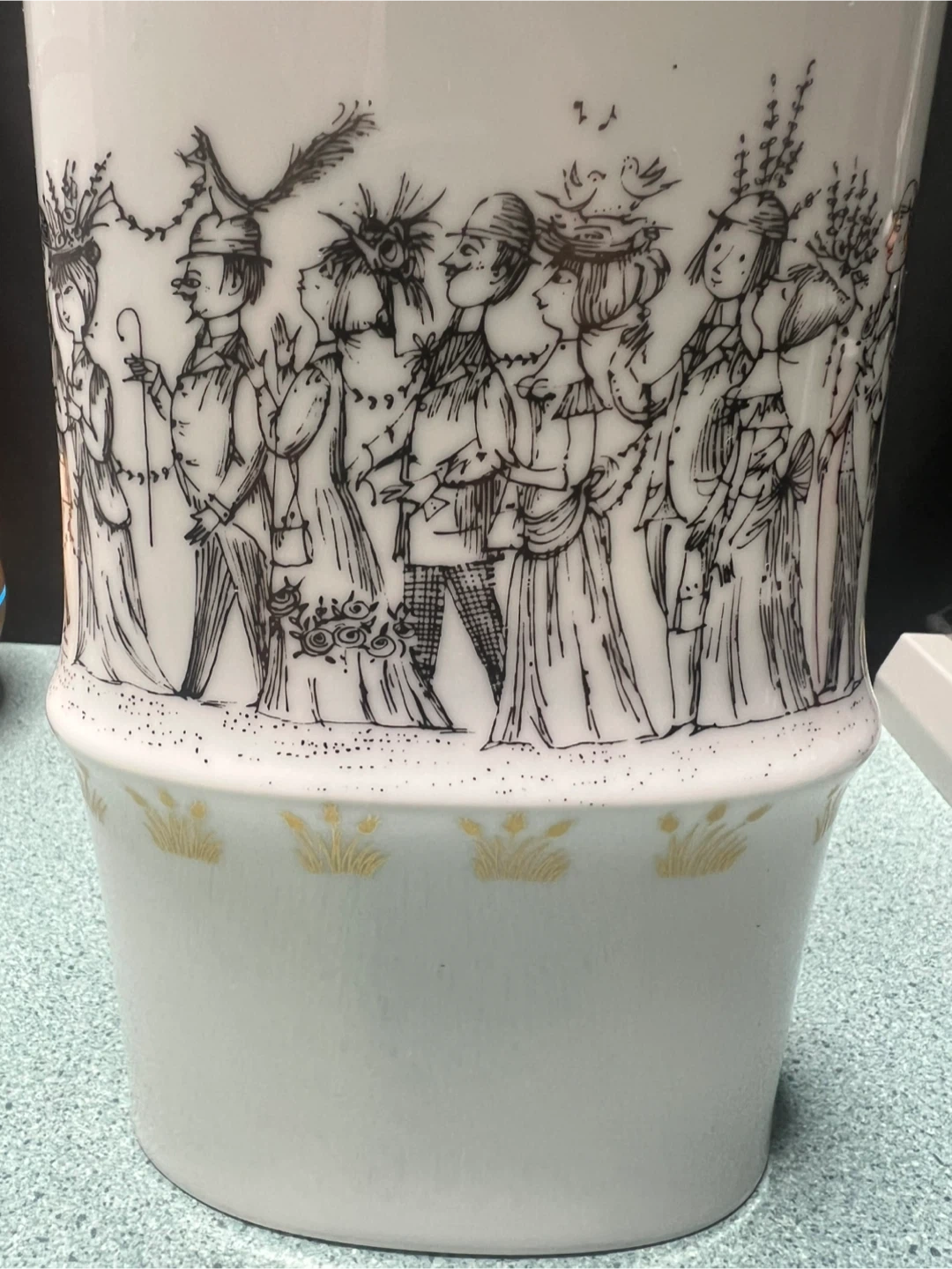 Large oval vase “WEDDING MARCH”. Rare and in very good condition. No cracks. Measures 11.5” in height and 5.5” in width. Pick up is in Woodland Park Nj or I can ship.