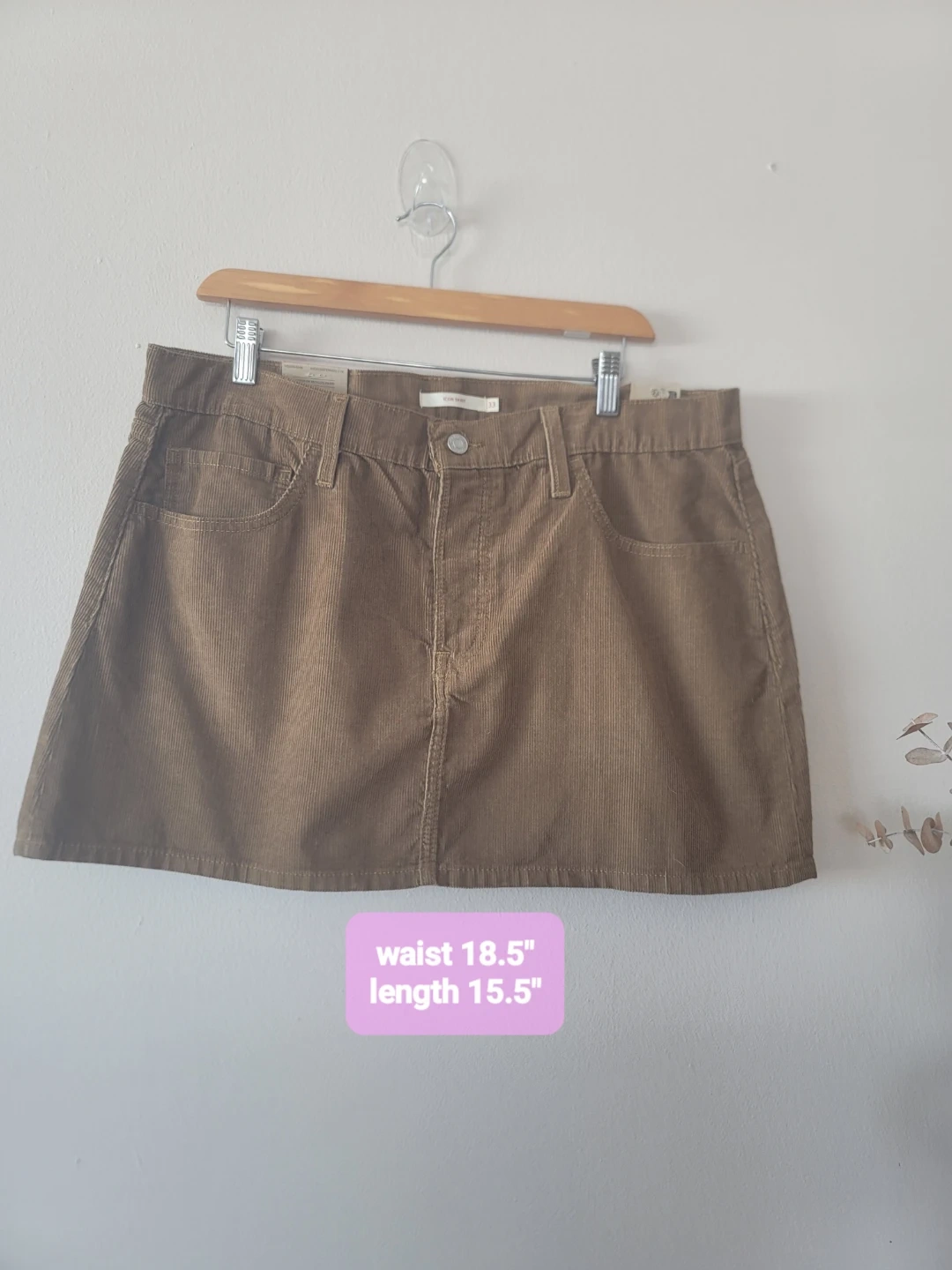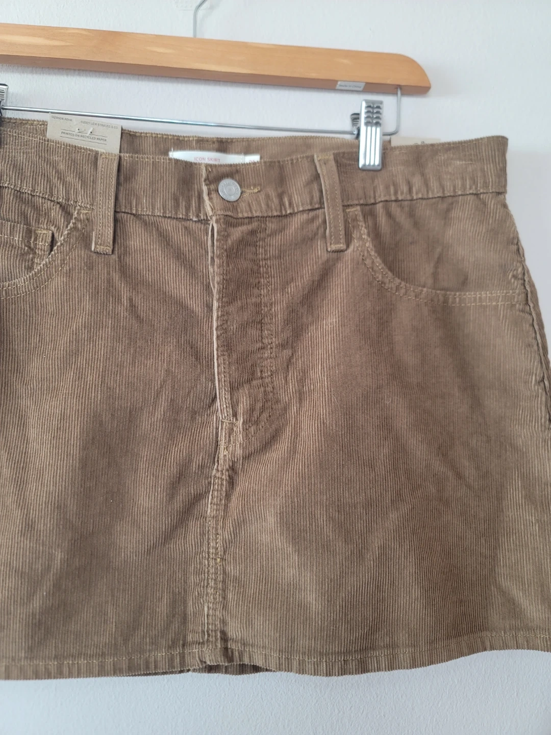 Step back in time with this brand new, New With Tags (NWT) Levi's Icon corduroy mini skirt. Perfect for achieving that coveted Y2K, indie, or skater girl aesthetic. The rich brown corduroy fabric gives a cozy, retro feel, while the classic #mini silhouette is a staple for any grunge or academia inspired wardrobe. This piece is versatile and ready to be styled for any season! Features a classic button fly closure and five-pocket design. 100% #cotton ecocore