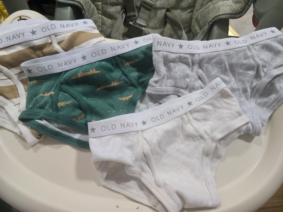 Four pairs of boys underwear. Size 4T. Various colors and patterns. Good used condition.