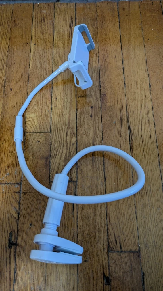 Selling a Tzumi flexible phone or tablet holder in white! It's perfect for hands-free viewing and is in great condition