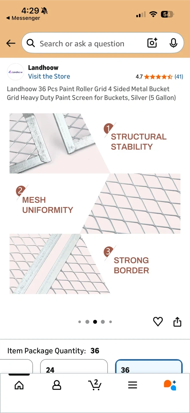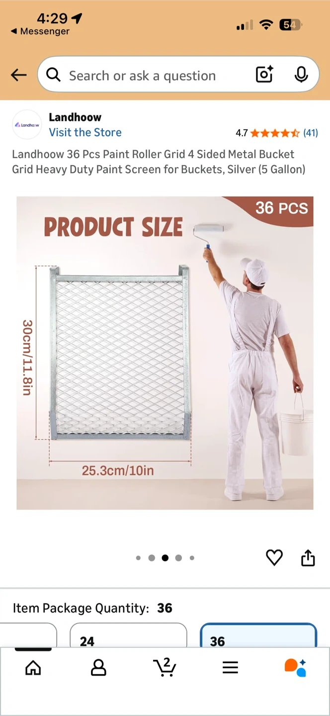 This is a 36-piece set of Landhooow paint roller grids. They're made of silver metal and designed for 5-gallon buckets. The grids measure 10 inches by 11.8 inches.