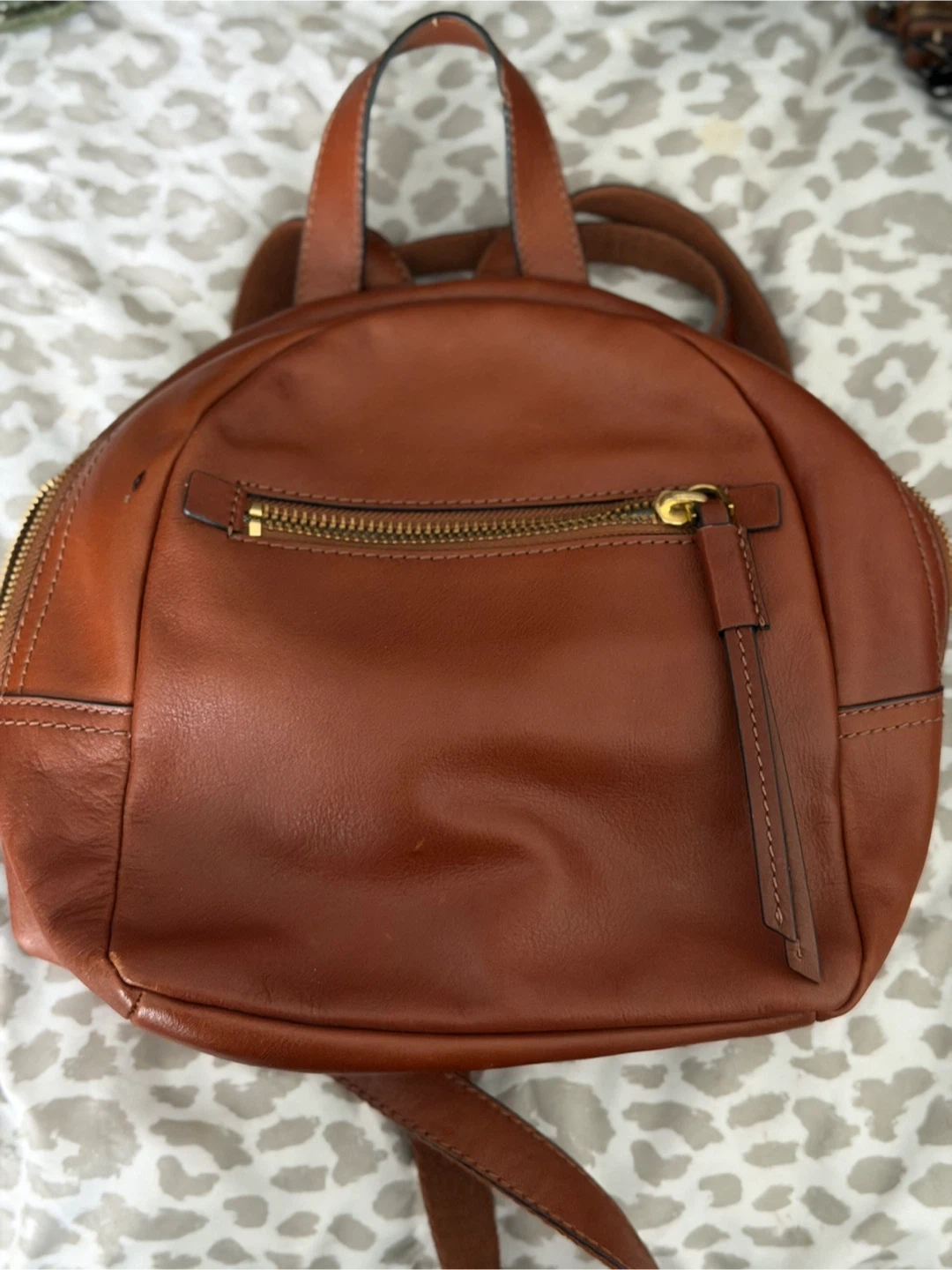 Selling a cute Fossil brown leather backpack! It's a stylish and practical accessory. The leather has a beautiful, rich color. It's perfect for carrying your essentials in style